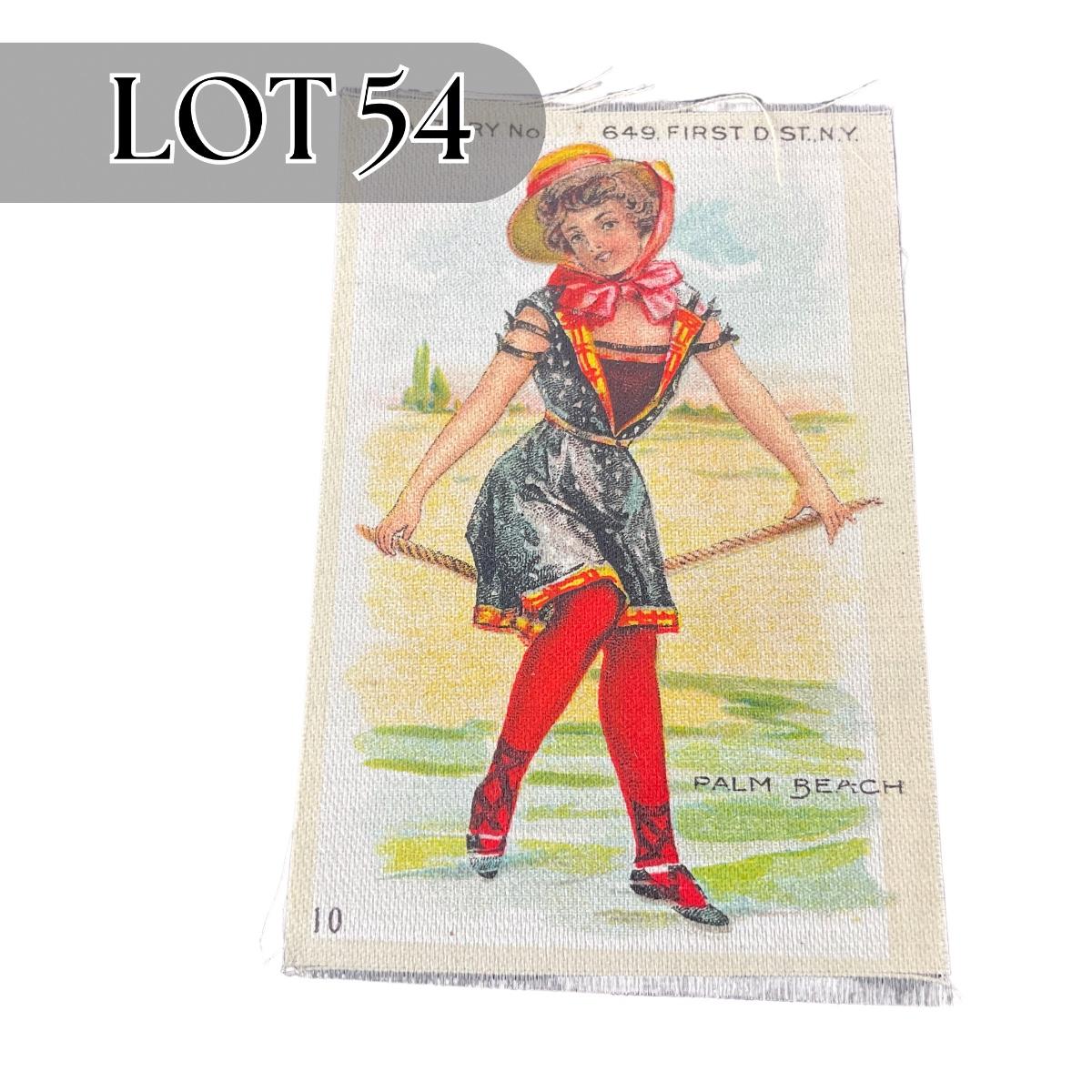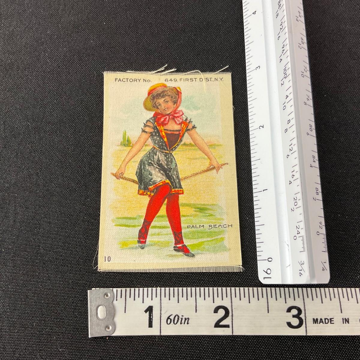 One antique Edwardian bathing beauty tobacco silk. Please see photos for details and condition. Any condition statement is given as a courtesy to a client, is an opinion, and should not be treated as a statement of fact. Reference to condition written, oral or within a condition report shall not be regarded as a full account of condition and may not include all defects, alterations, or restorations. Absence of a condition report does not imply a lot is flawless or lacking imperfections or damage. Katherine’s Auction & Appraisal Service shall have no responsibility for any error or omission. Returns shall not be accepted on the basis of condition. ::: Shipping is available on this lot. If you require shipping you must let us know at the close of the auction. We will coordinate with you after the item has been won. Shipping fees will include insurance up to or exceeding the value of all items being mailed. If you have any questions regarding this lot please contact the auctioneer either via this website, by direct email or by phone. PICK UP TIMES and other important information can be found in the TERMS and DESCRIPTION of the auction. Please take a look for pertinent information. Thanks!
