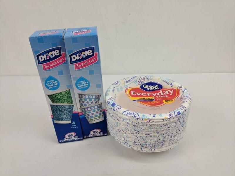 54 Soak--Proof Paper Bowls (Great Value) & 2 Boxes 100ct Each Dixie 3oz Bath Cups - New