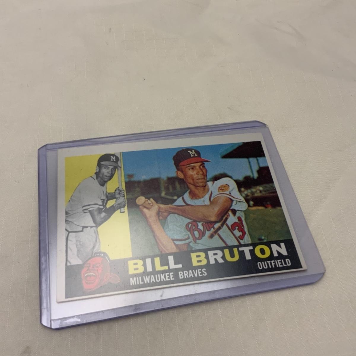 TOPPS Card #37 from the 1960 Series. Bill Bruton played for the Milwaukee Braves. Card in in excellent condition. Card comes from the original owner. Please see photos for details and condition. ::: Shipping is available on this lot. If you require shipping you must let us know at the close of the auction. We will coordinate with you after the item has been won. Shipping fees will include insurance up to or exceeding the value of all items being mailed. If you have any questions regarding this lot please contact the auctioneer either via this website, by direct email or by phone. PICK UP TIMES and other important information can be found in the TERMS and DESCRIPTION of the auction. Please take a look for pertinent information. Thanks!