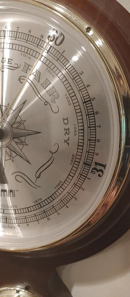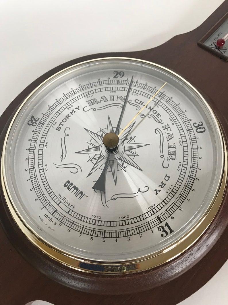 Awesome vintage Gemini 3 weather station banjo mahogany wall hanging is 28.75" tall, 9" wide.