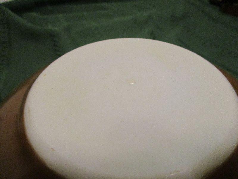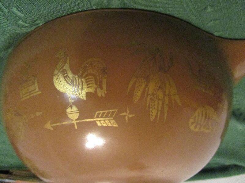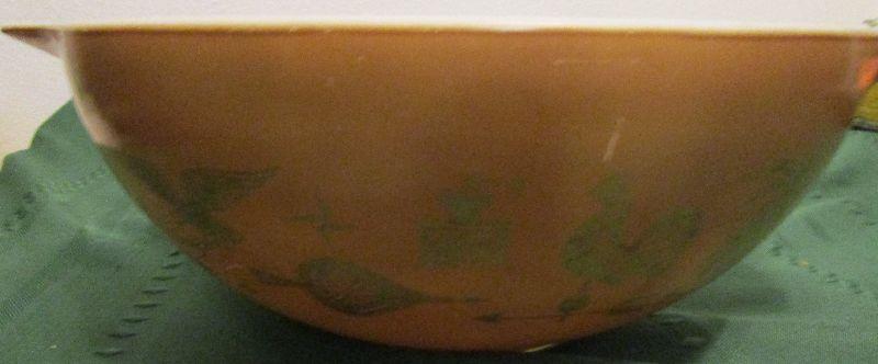 Pyrex Early American Cinderella Mixing Bowl, Brown with Gold design, model 444, 4 quart, Good Condition