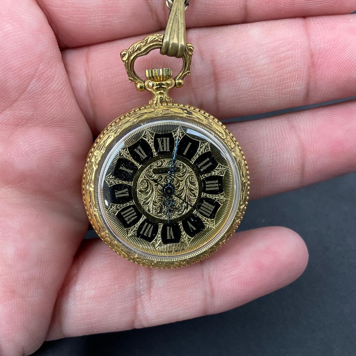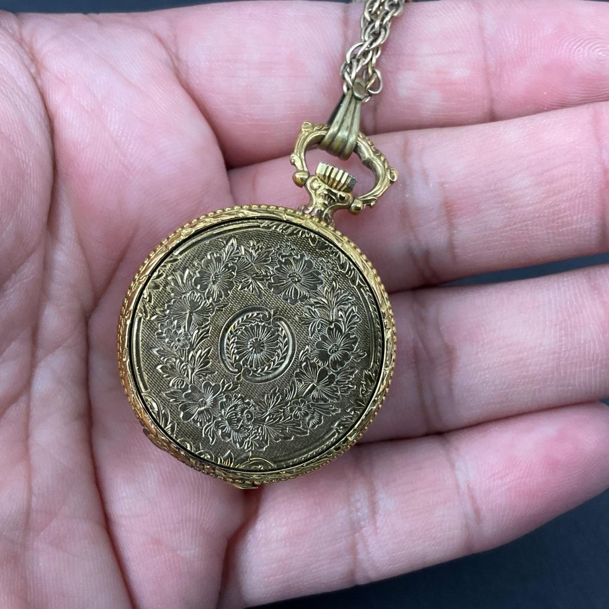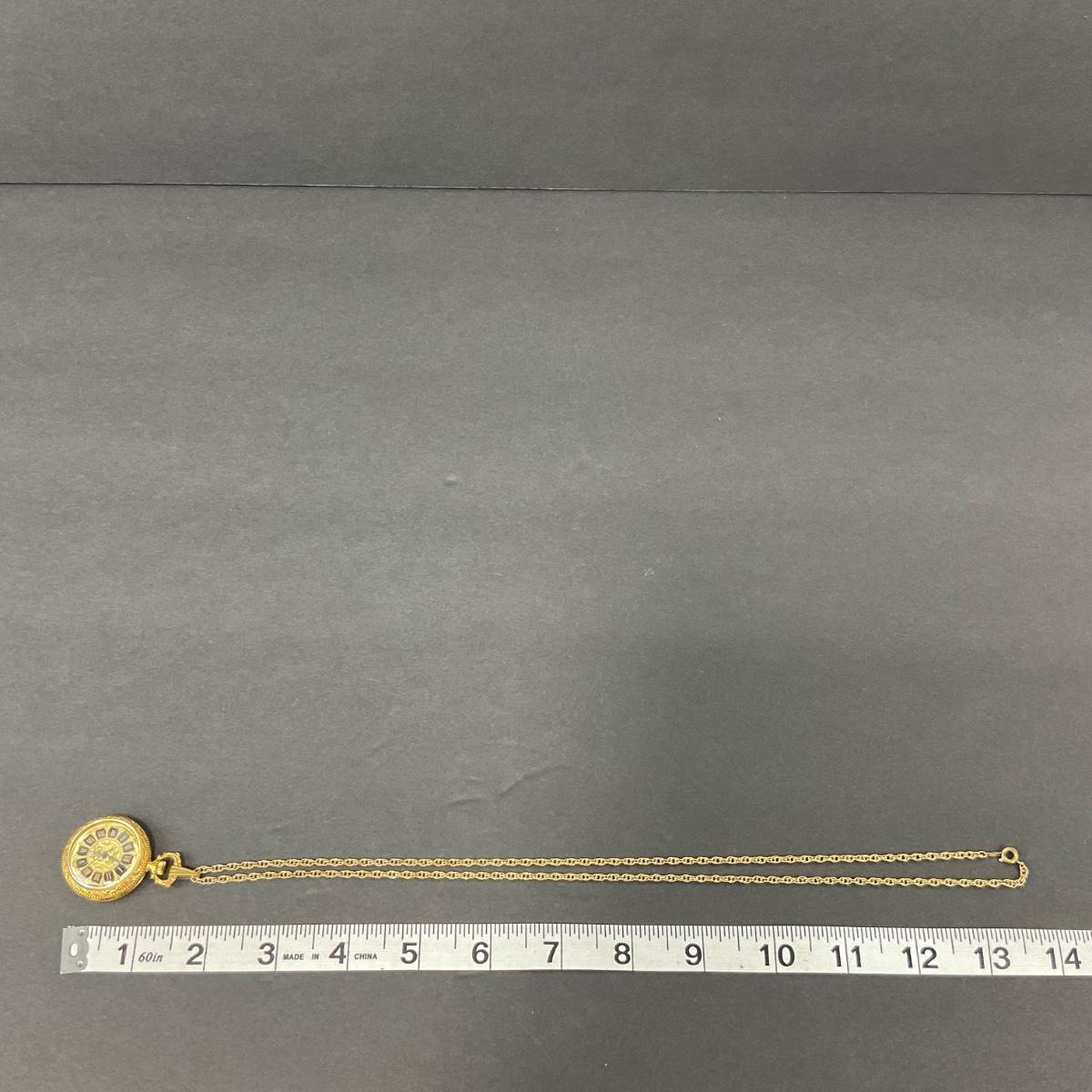 One Comays 1/20 12K GF Chain marked. This pocket watch is believed to be in working order, but nit guaranteed. Please see photos for details and condition. Any condition statement is given as a courtesy to a client, is an opinion, and should not be treated as a statement of fact. Reference to condition written, oral or within a condition report shall not be regarded as a full account of condition and may not include all defects, alterations, or restorations. Absence of a condition report does not imply a lot is flawless or lacking imperfections or damage. Katherine’s Auction & Appraisal Service shall have no responsibility for any error or omission. Returns shall not be accepted on the basis of condition. ::: Shipping is available on this lot. If you require shipping you must let us know at the close of the auction. We will coordinate with you after the item has been won. Shipping fees will include insurance up to or exceeding the value of all items being mailed. If you have any questions regarding this lot please contact the auctioneer either via this website, by direct email or by phone. PICK UP TIMES and other important information can be found in the TERMS and DESCRIPTION of the auction. Please take a look for pertinent information. Thanks!