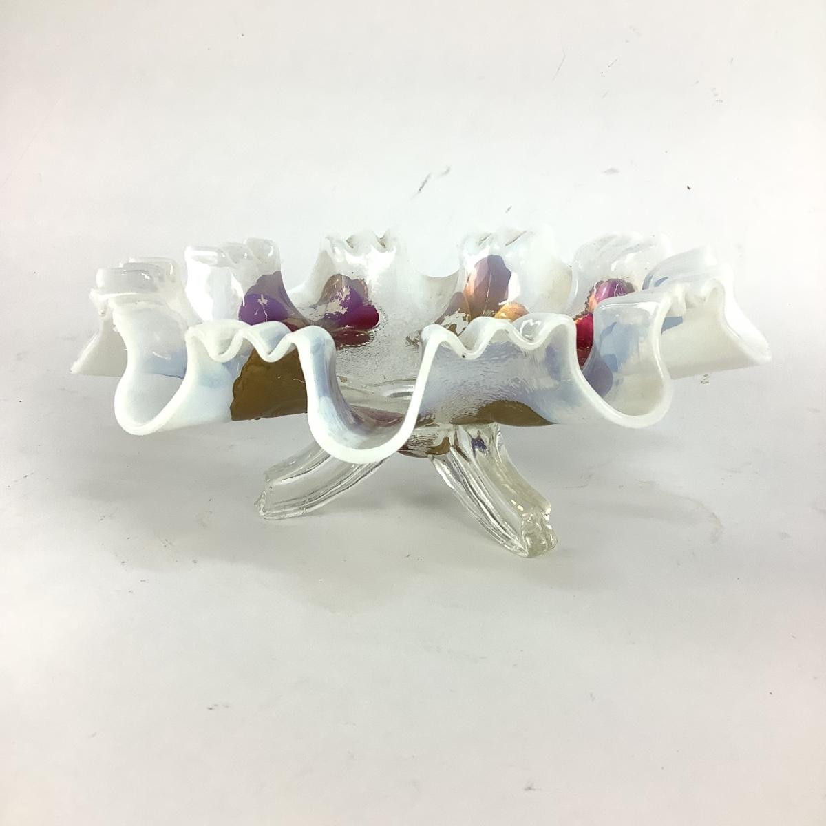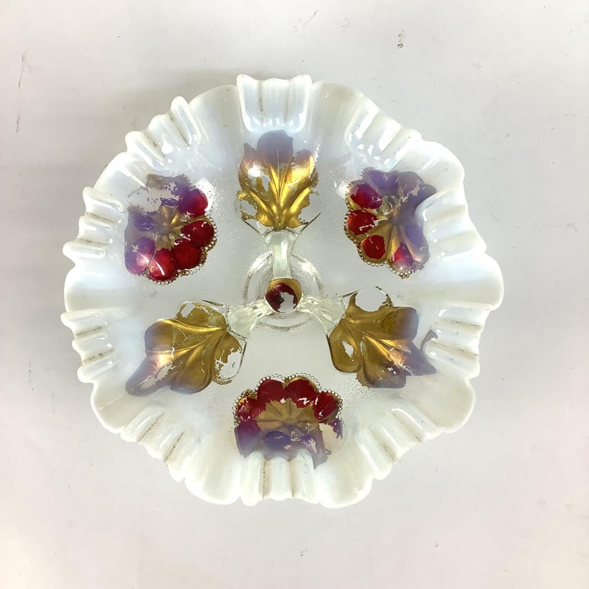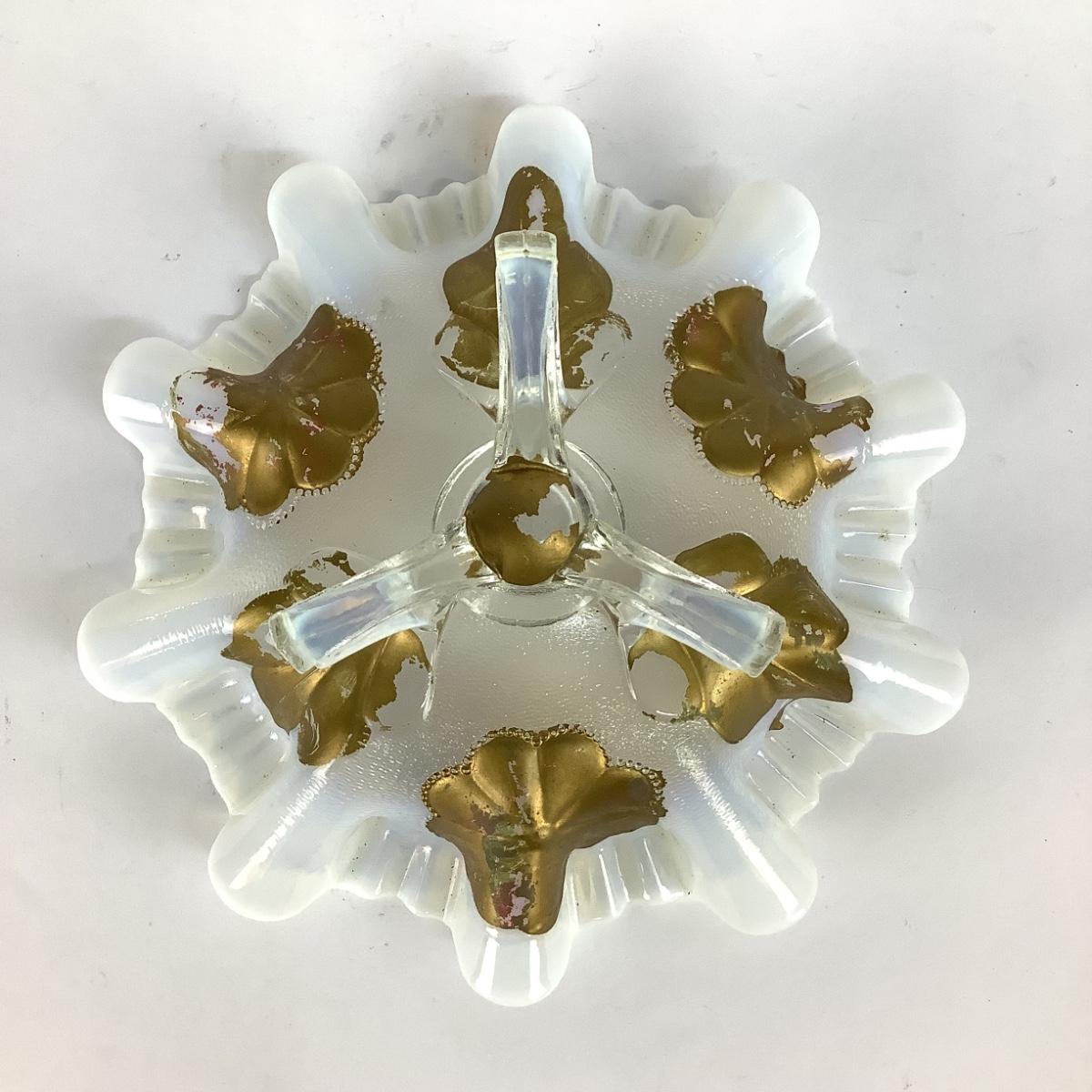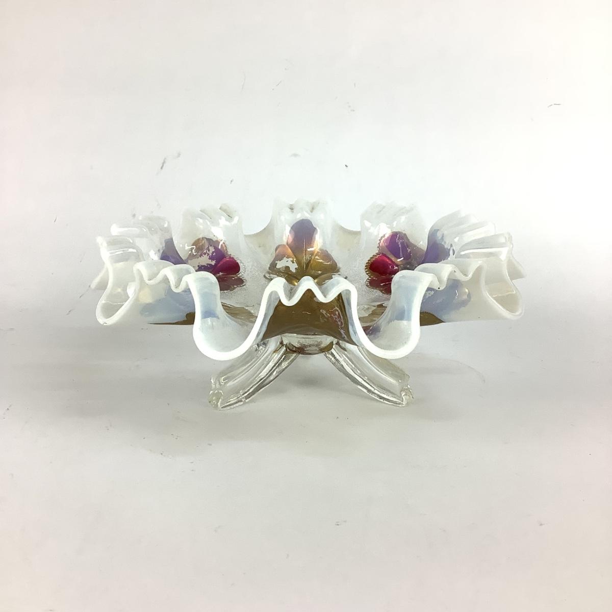 540 Antique Dugan Opalescent Goofus Glass Footed Bowl