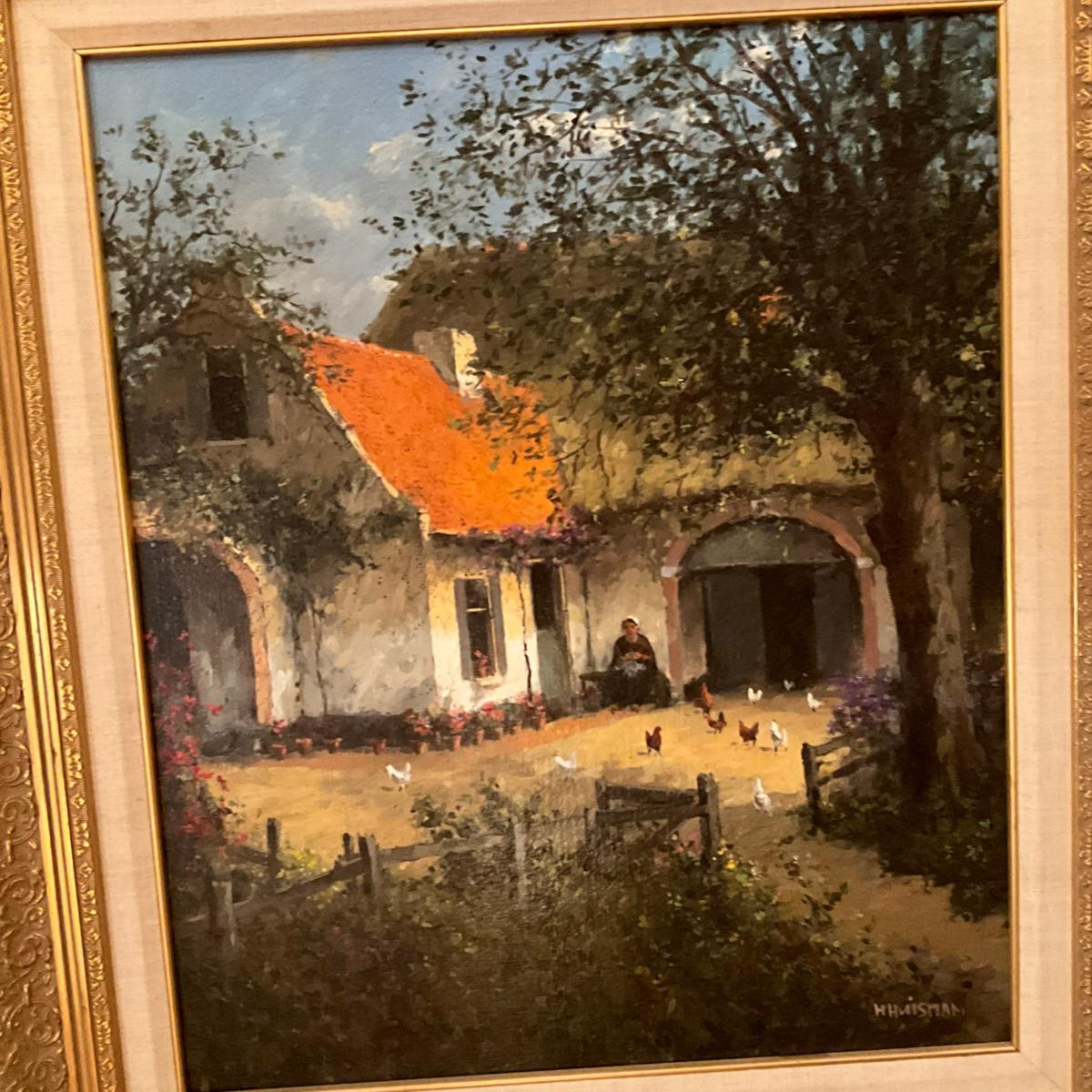 540 Large Original Oil Painting of Dutch Country Scene by H. Huisman