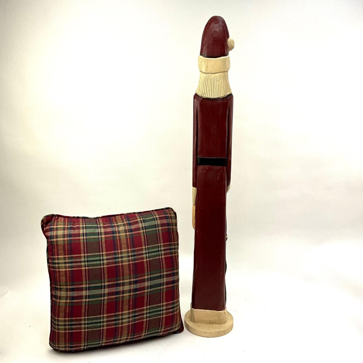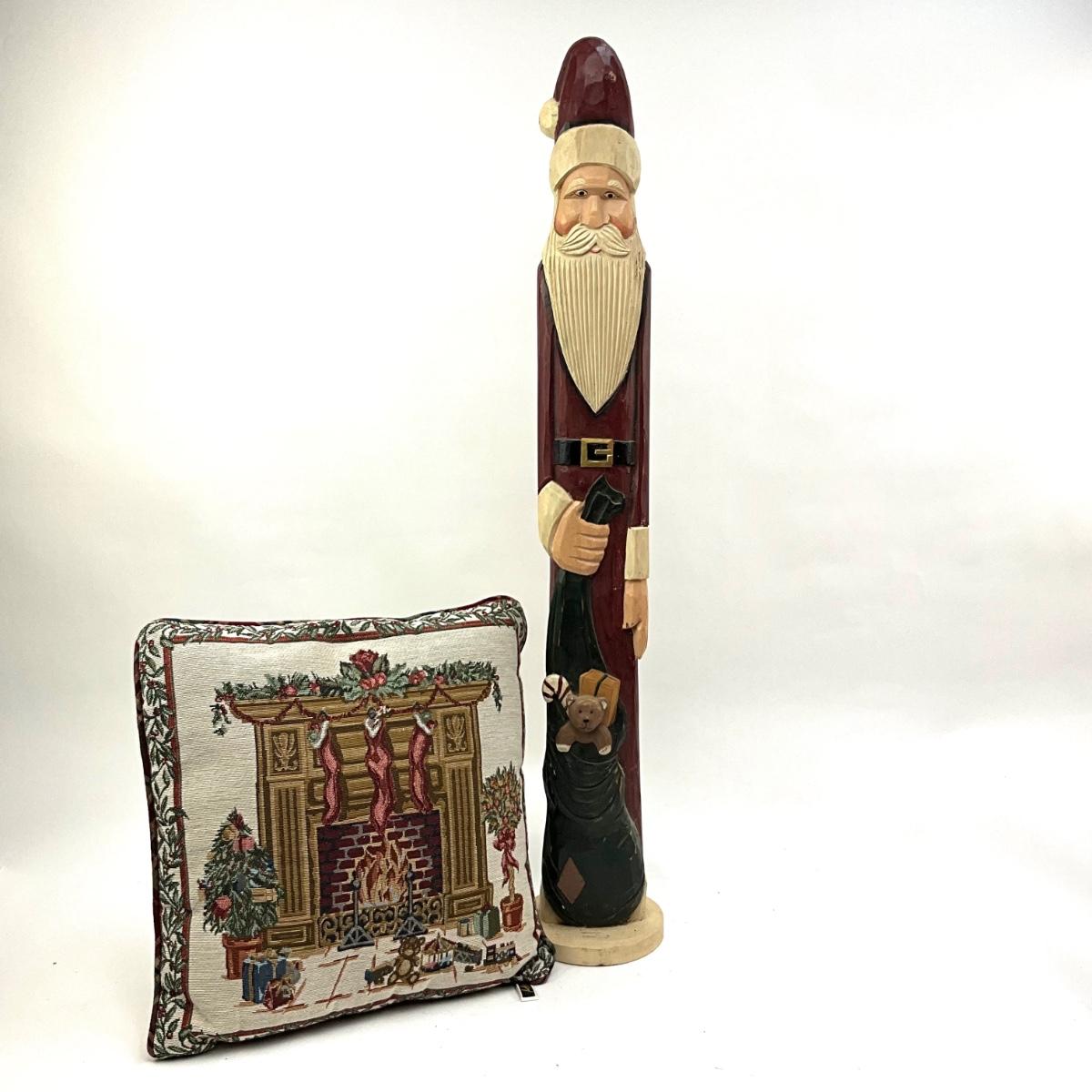 540 Tall 3' Wood Carved Santa Figure with Decorative Pillow