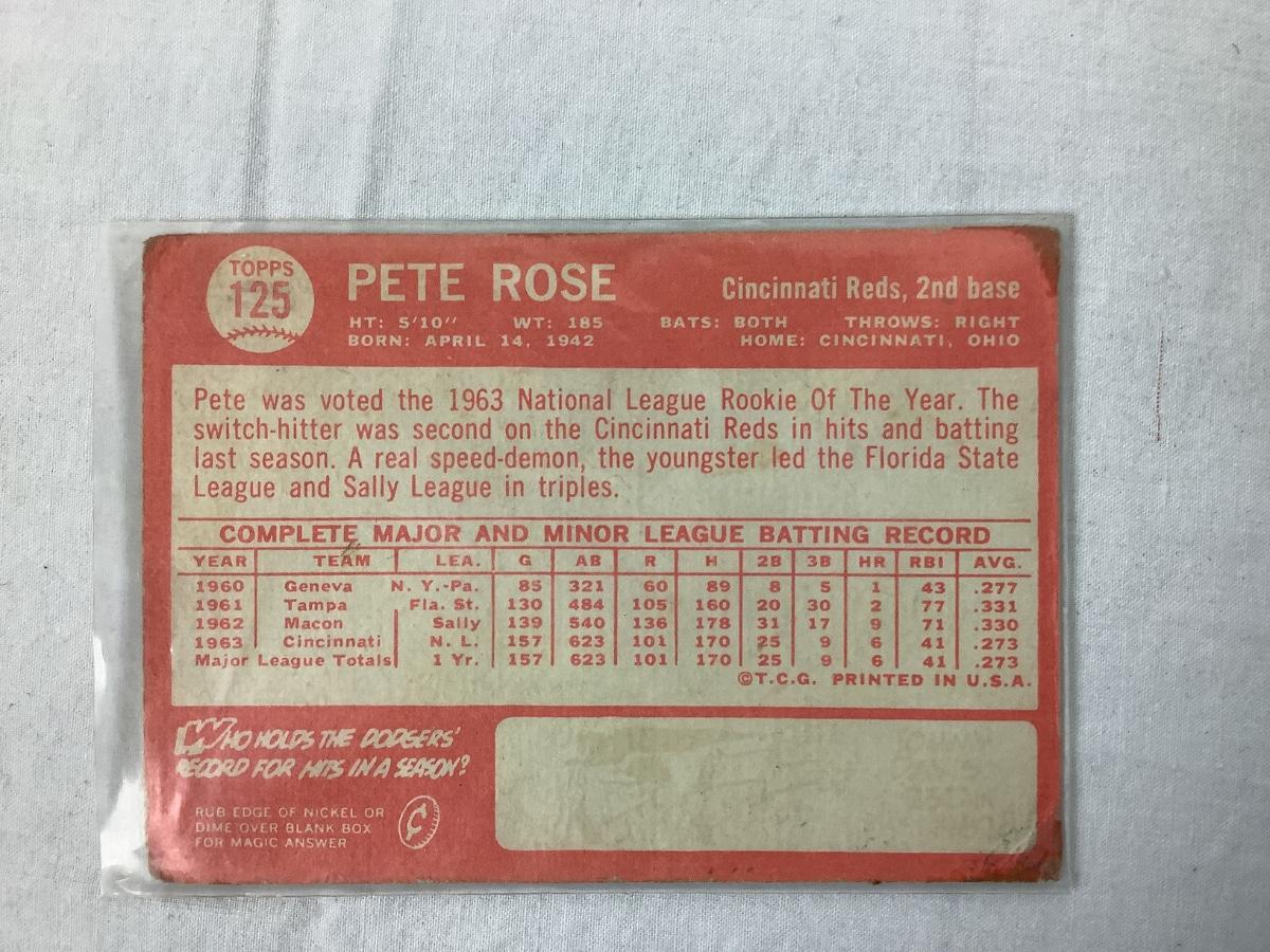 1964 Topps Chewing Gum 1663 All-Star Rookie Pete Rose, Cincinnati Reds #125 Baseball Card.