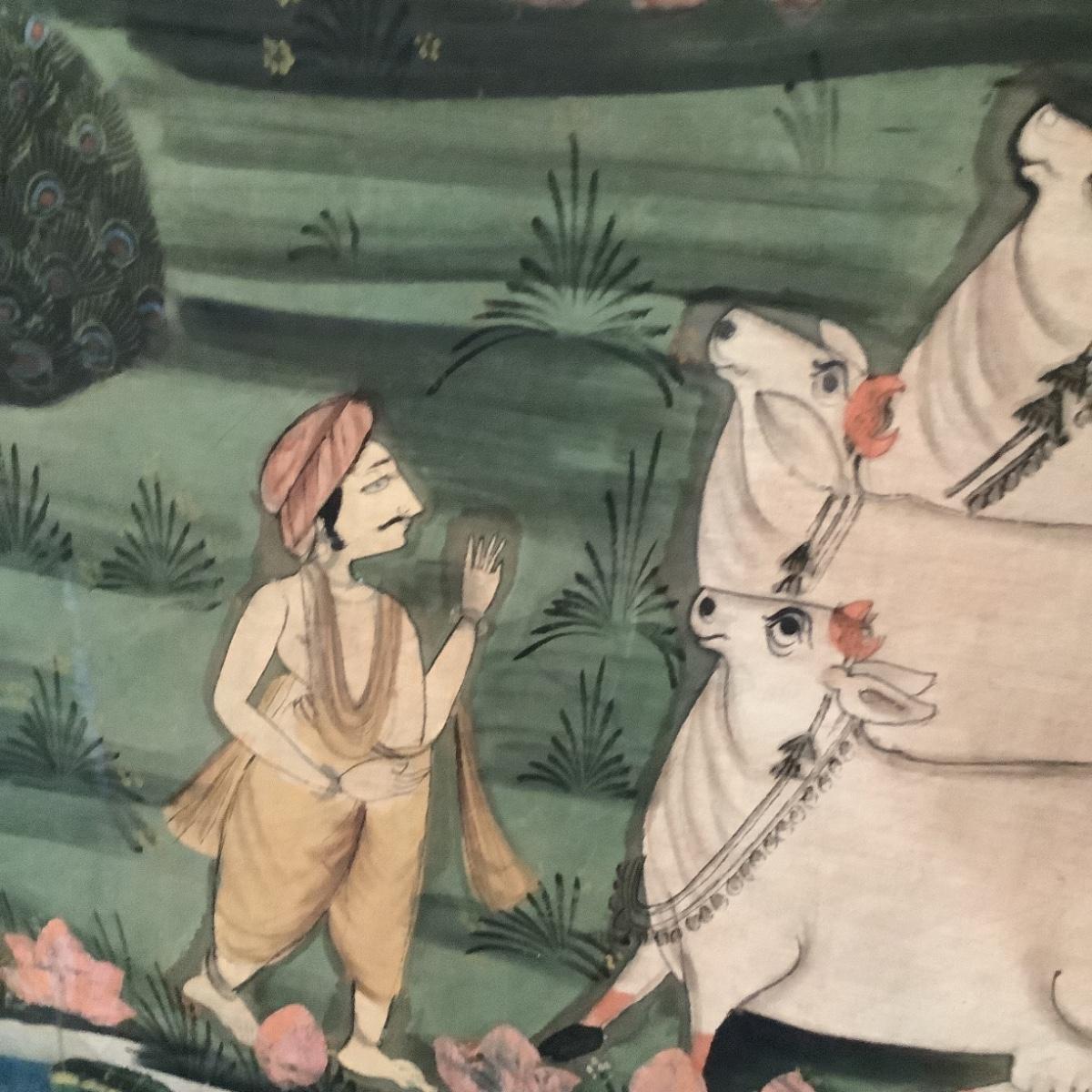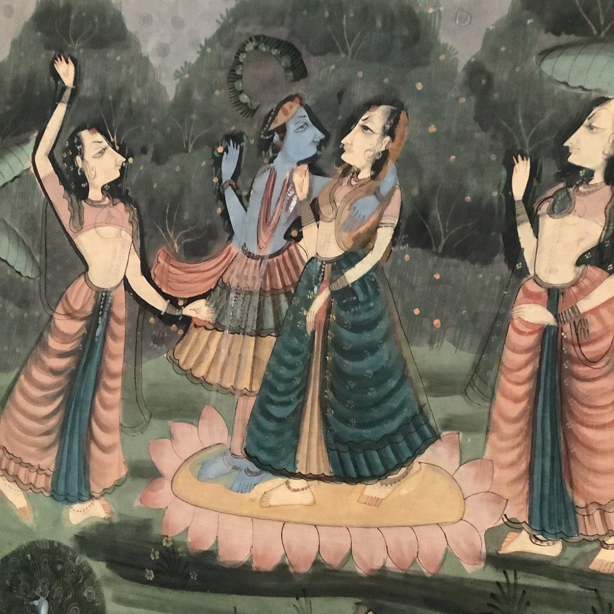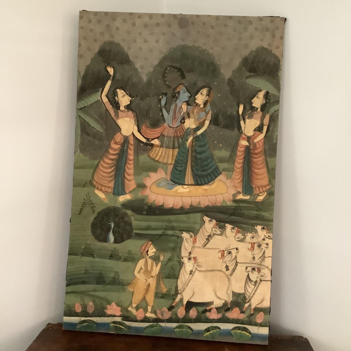 H543 "Krishna Is In The Garden" 18th Century Fabric Art