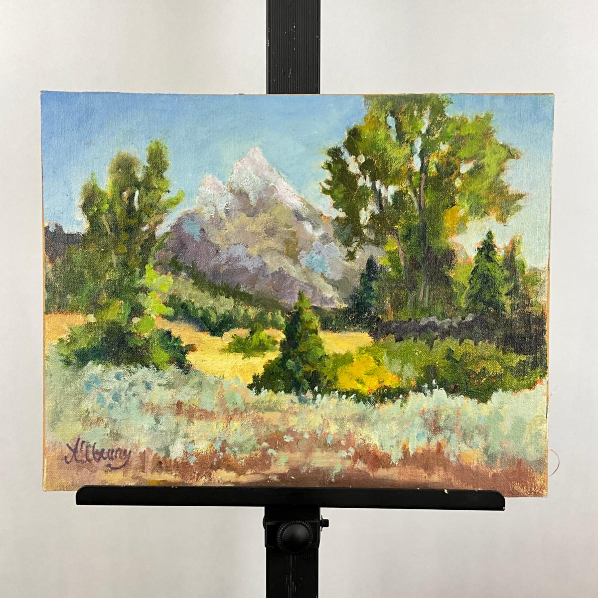 544 Signed Oil On Board Mountain Landscape "Along The Road Near Jackson, WY"