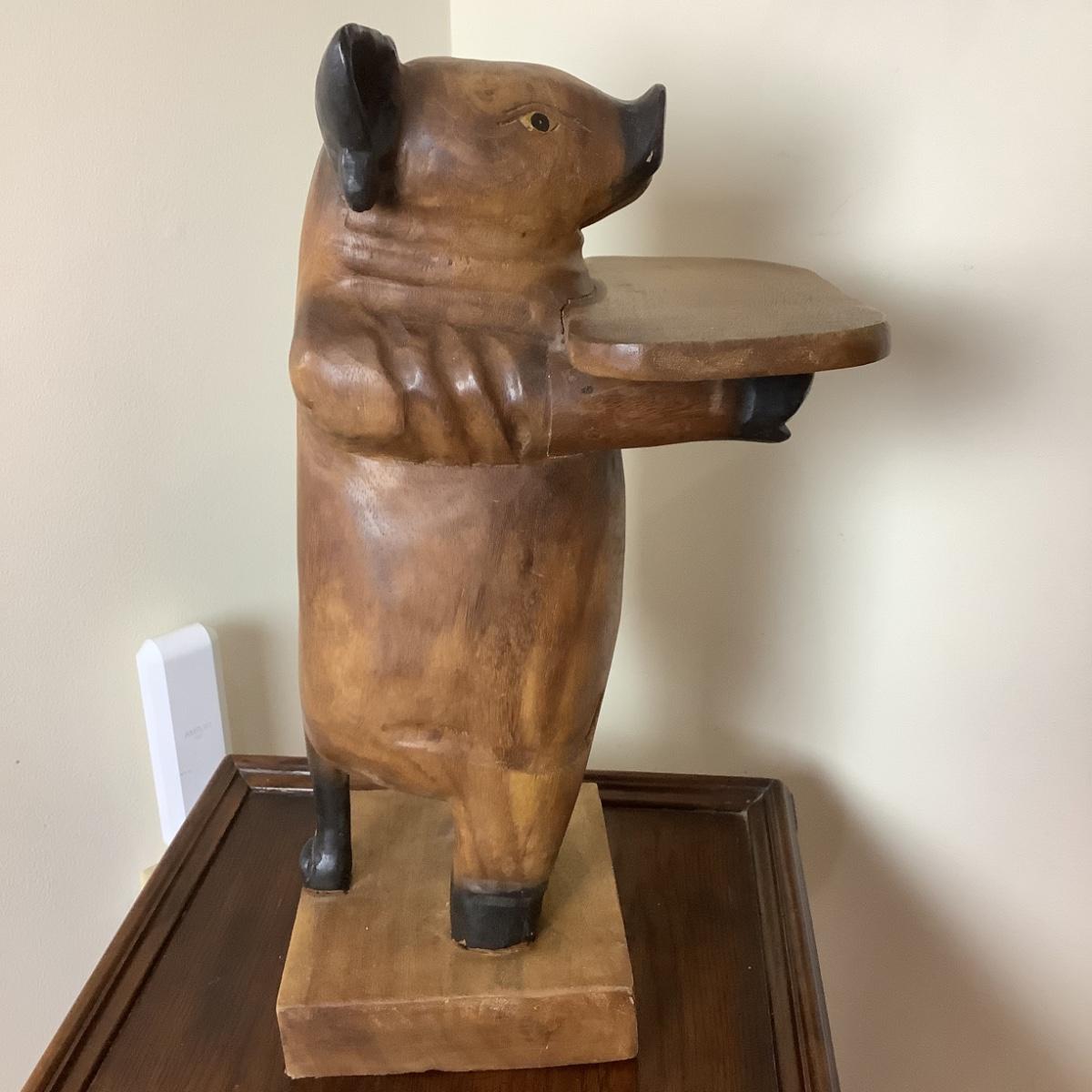 545 Wooden Serving Pig Figure/ Statue