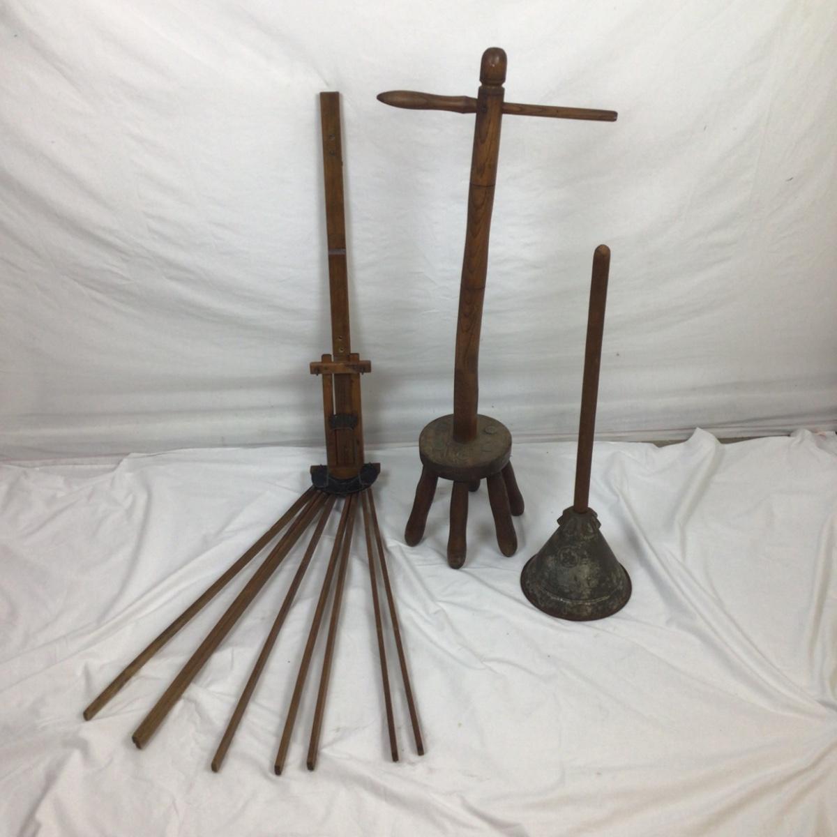 5452 Vintage Wooden Wash Dolly, Clothes Dryer, Laundry Plunger