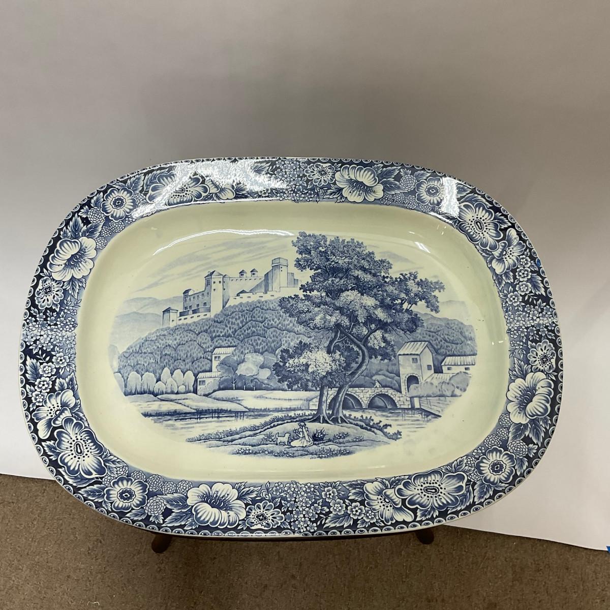 546 Blue and White Dutch Pottery Transferware Oval Meat Platter on Stand