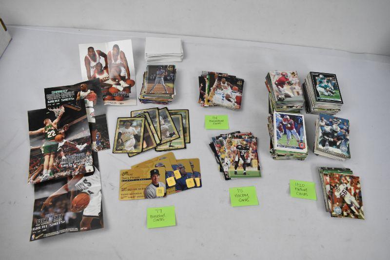 546 Sports Cards: 420 Football, 77 Baseball, 34 Basketball, 15 Hockey, 31 Mini Posters Basketball. 1990-1994 approx