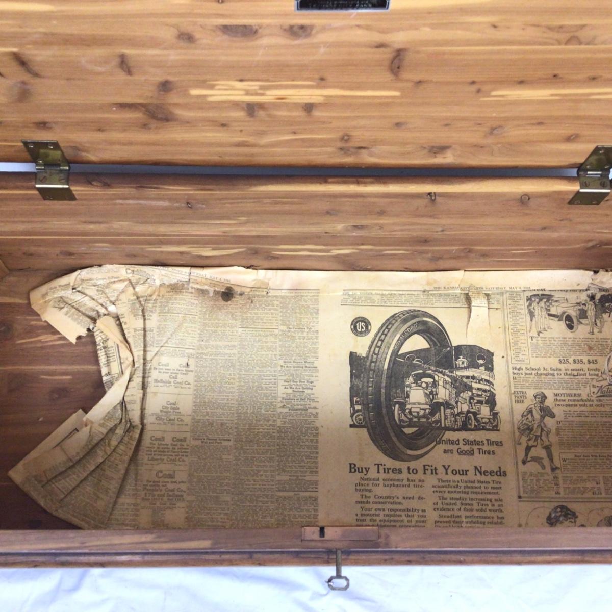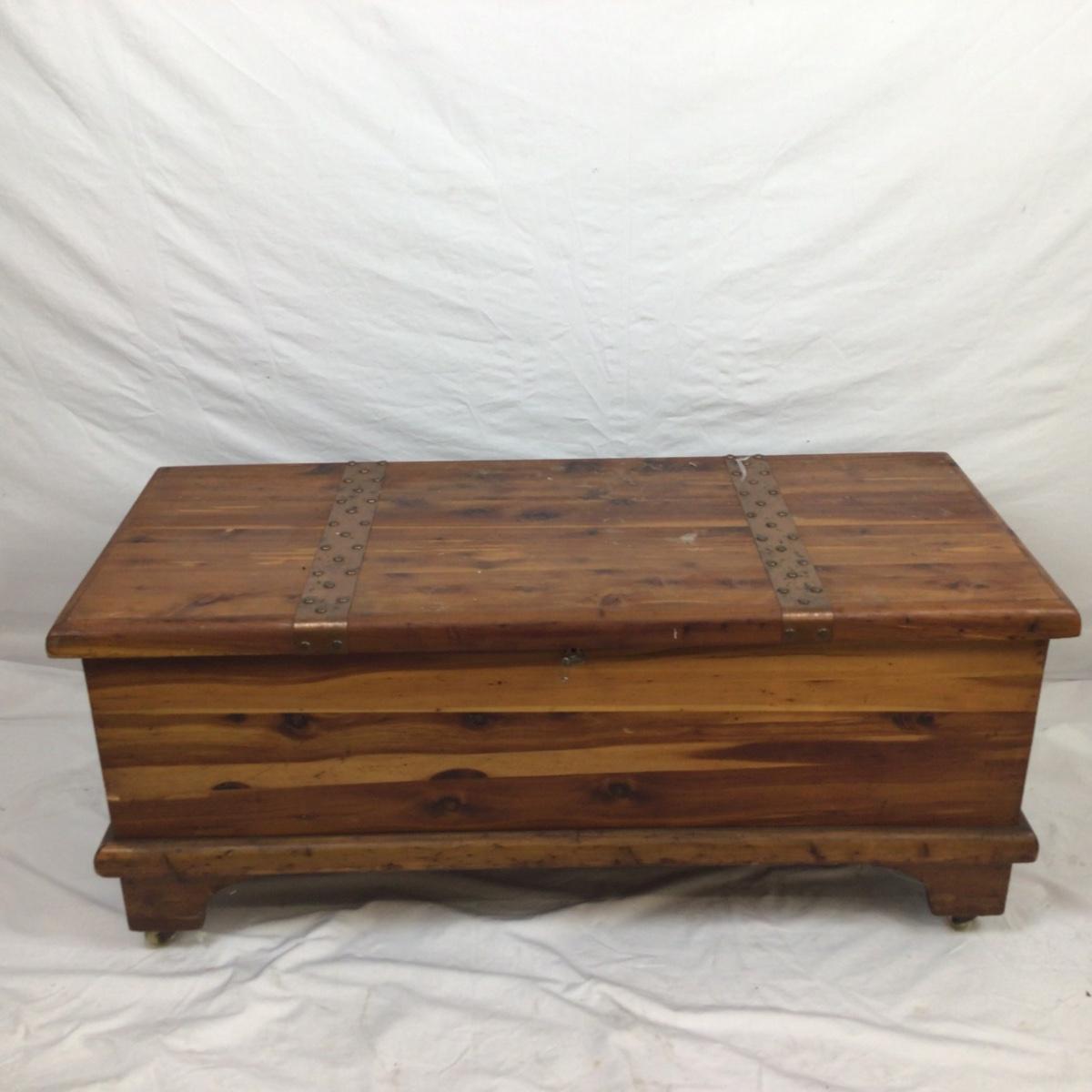 5469 Vintage Copper Banded Cedar Chest on Wheels