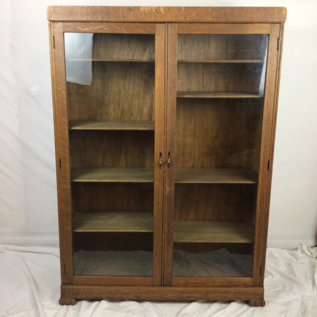 5474 Vintage Oak Glass Front Bookshelf