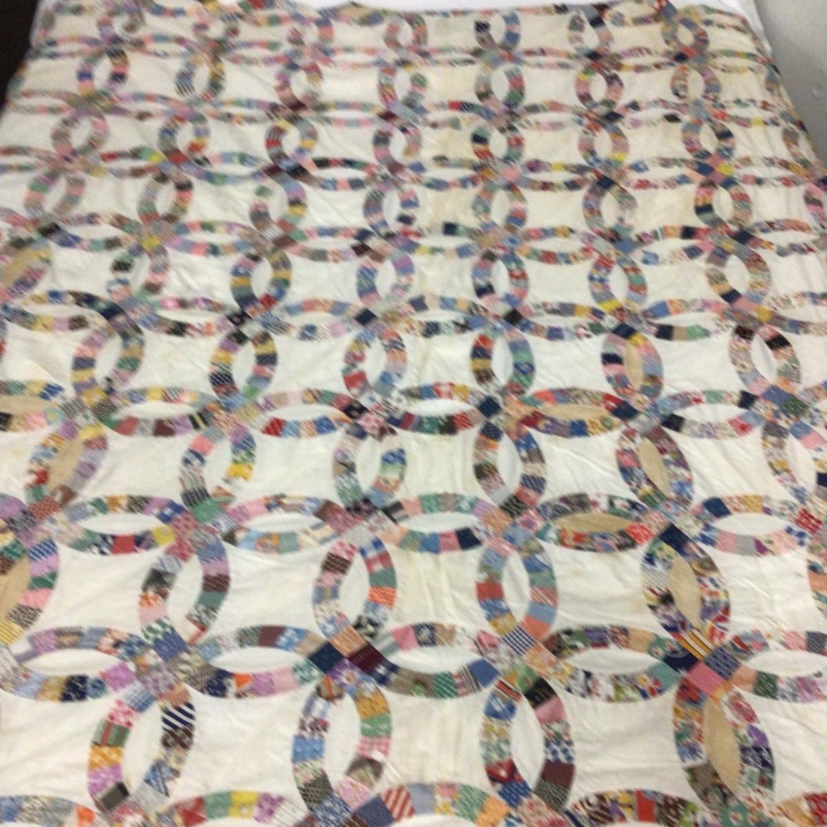 5486 Vintage Handmade Wedding Ring Quilt TOPPER