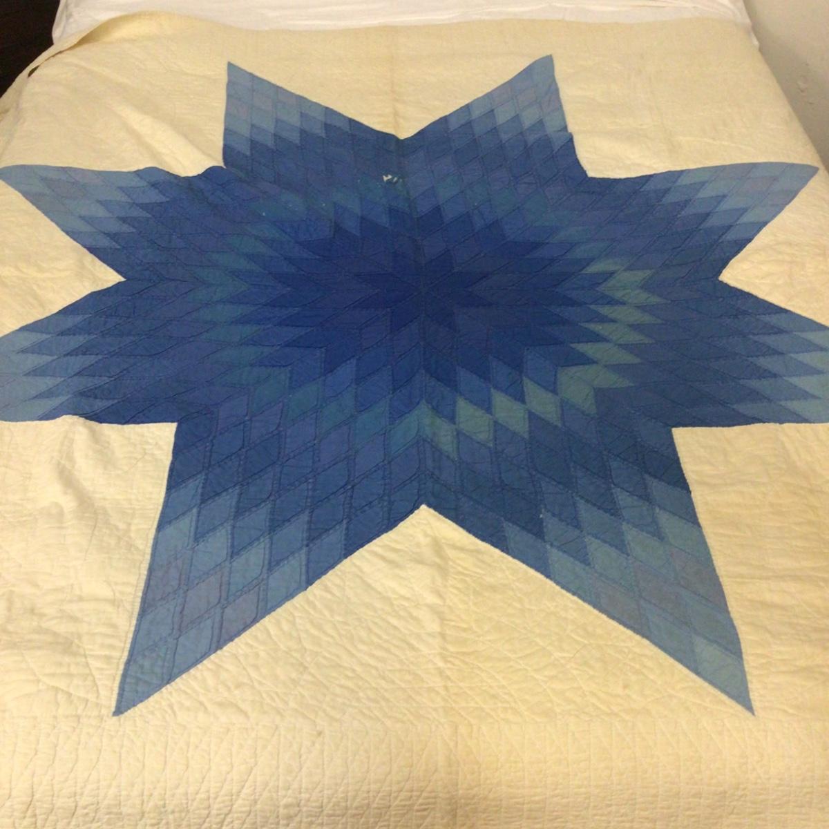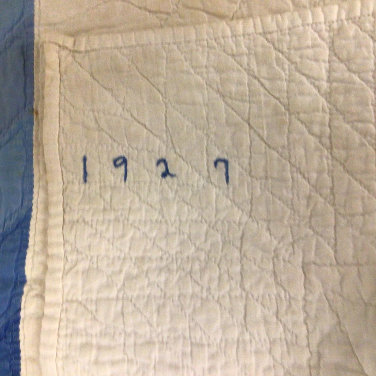 Stitched with date 1927 large blue lone star quilt