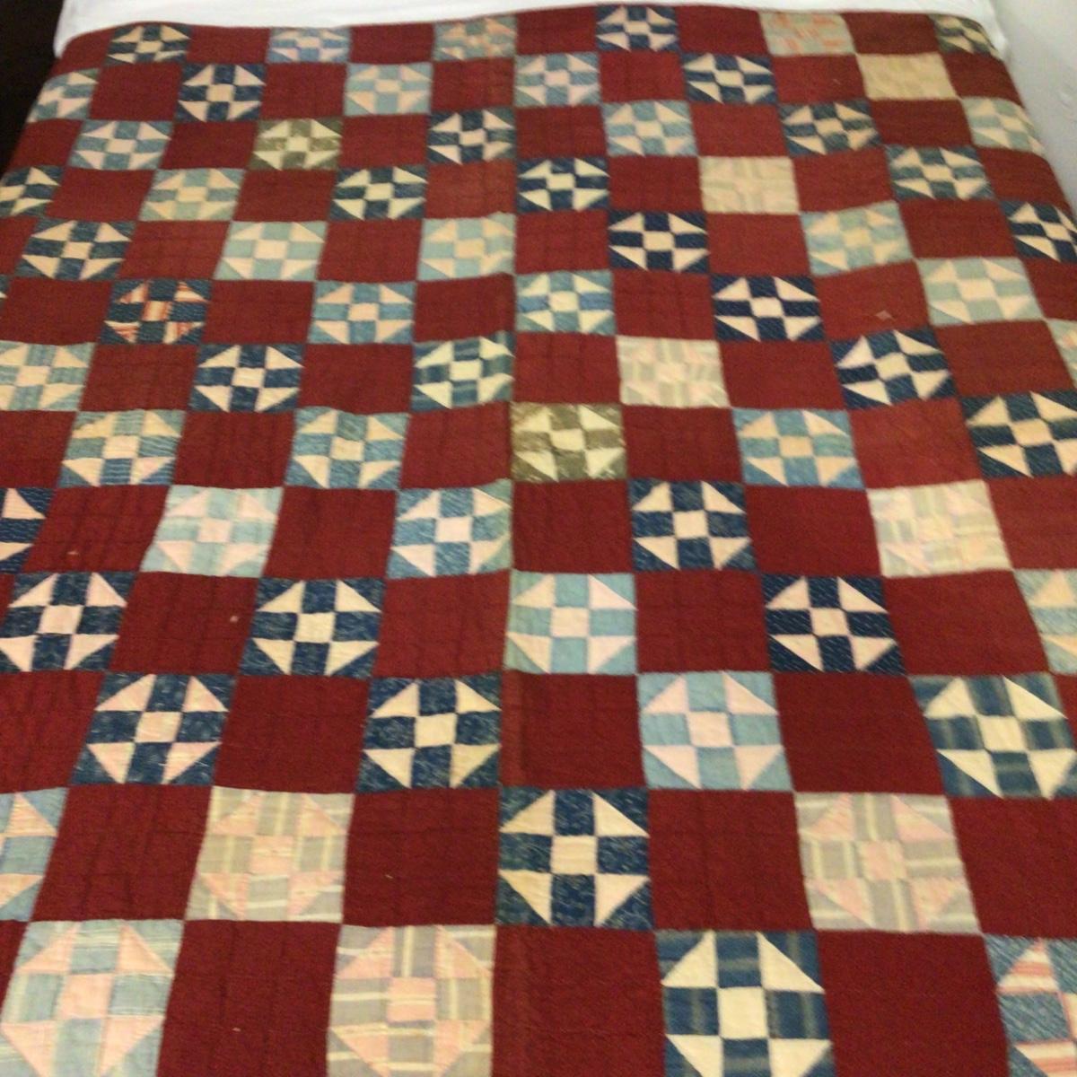 5489 Vintage Handmade Dark Red Shoo Fly Quilt