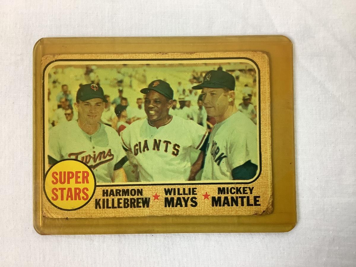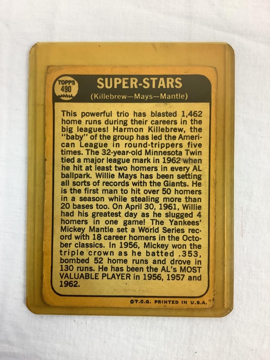 Vintage 1968 Topps Chewing Gum Super Stars Harmon Killebrew/Willie Mays/Mickey Mantle #490 Baseball Card