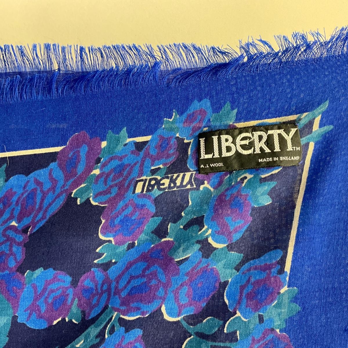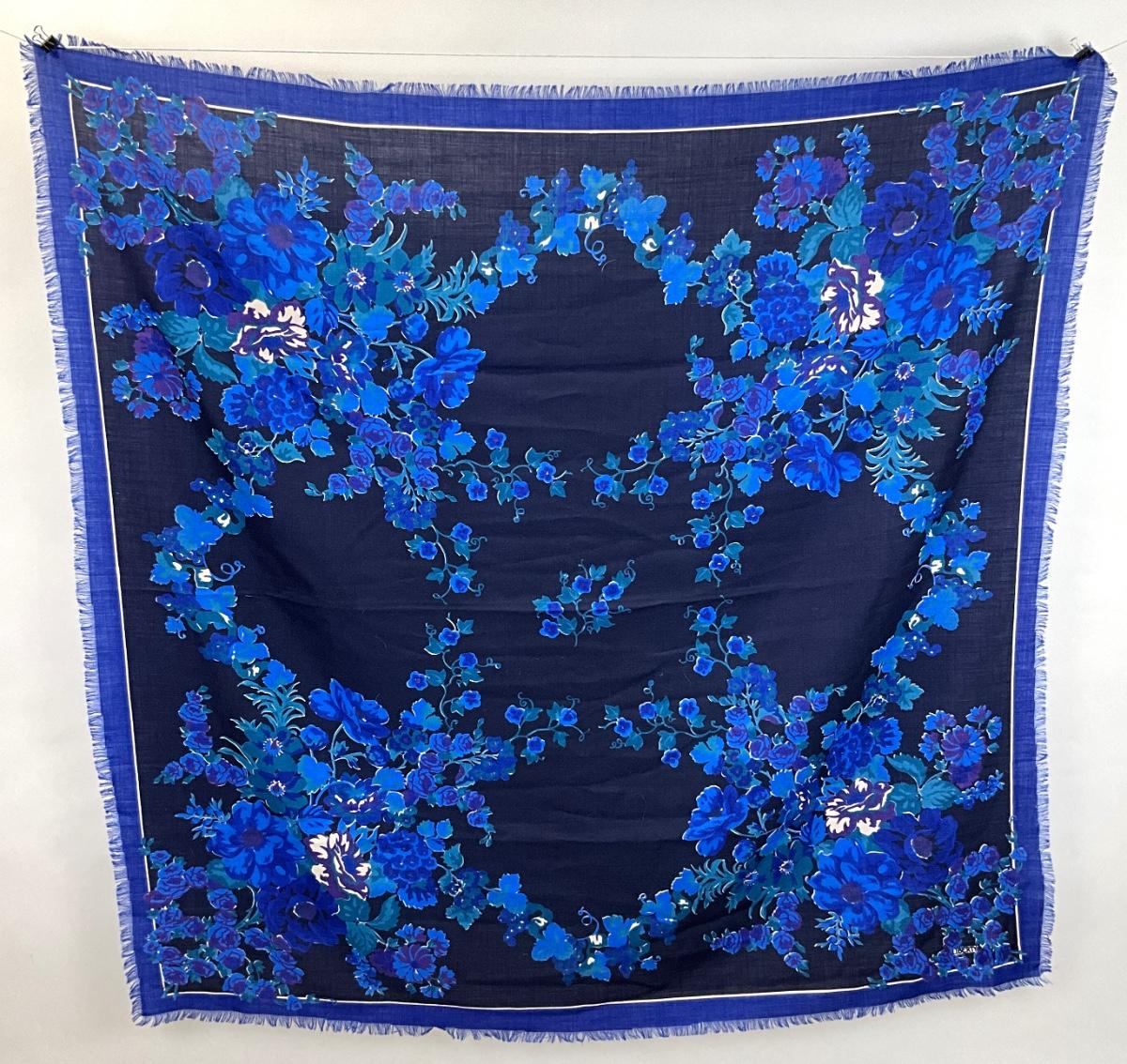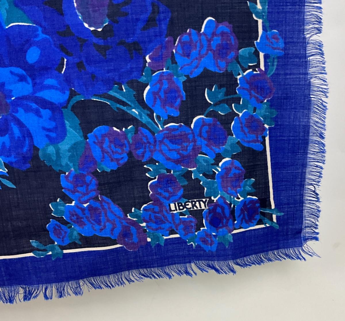 549 LIBERTY OF LONDON Blue Floral Wool Shawl