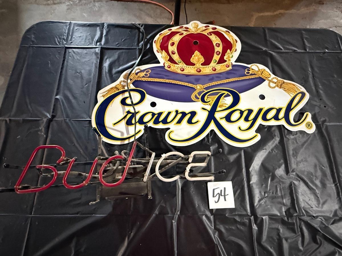 54-Nonworking Bud Ice neon light and Crown Royal beer sign