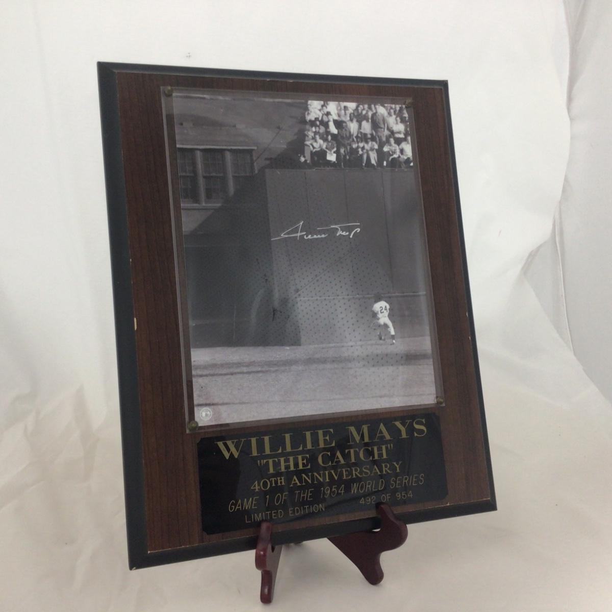 Baseballs Willie Mays plaque numbered 492/954 12 inches by 15 inches. Signed with no Certificate of Authenticity, item is assumed authentic however not guaranteed. Please see photos for details and condition. ::: Shipping is available on this lot. If you require shipping you must let us know at the close of the auction. We will coordinate with you after the item has been won. Shipping fees will include insurance up to or exceeding the value of all items being mailed. If you have any questions regarding this lot please contact the auctioneer either via this website, by direct email or by phone. PICK UP TIMES and other important information can be found in the TERMS and DESCRIPTION of the auction. Please take a look for pertinent information. Thanks!