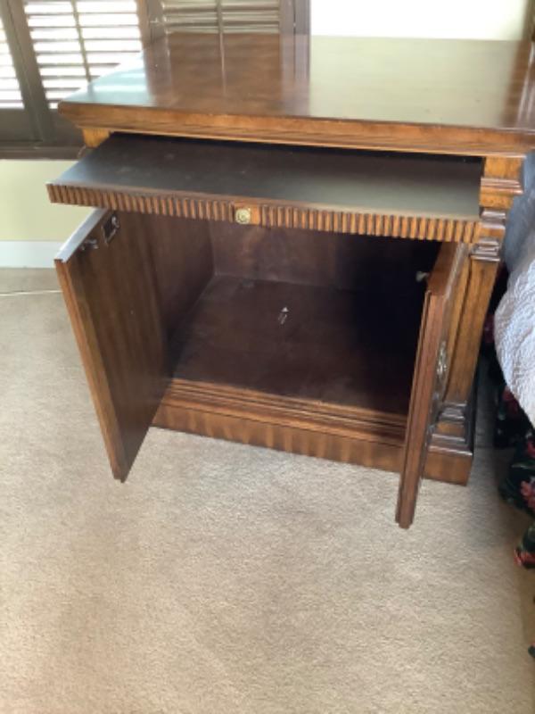 Set of two matching bedside tables, solid wood. In excellent condition. Measurements in photos.