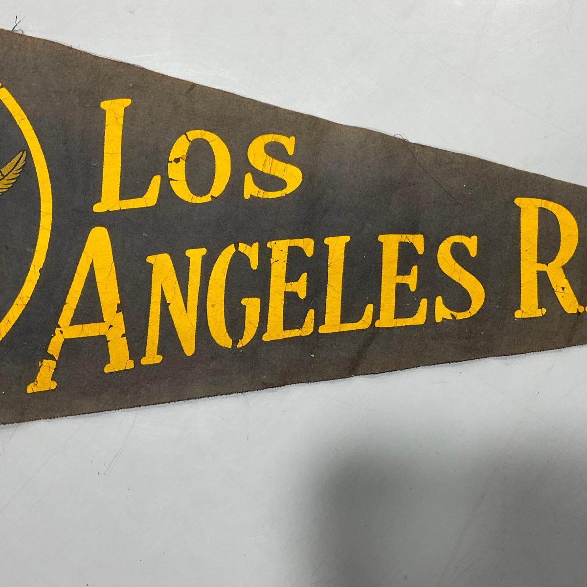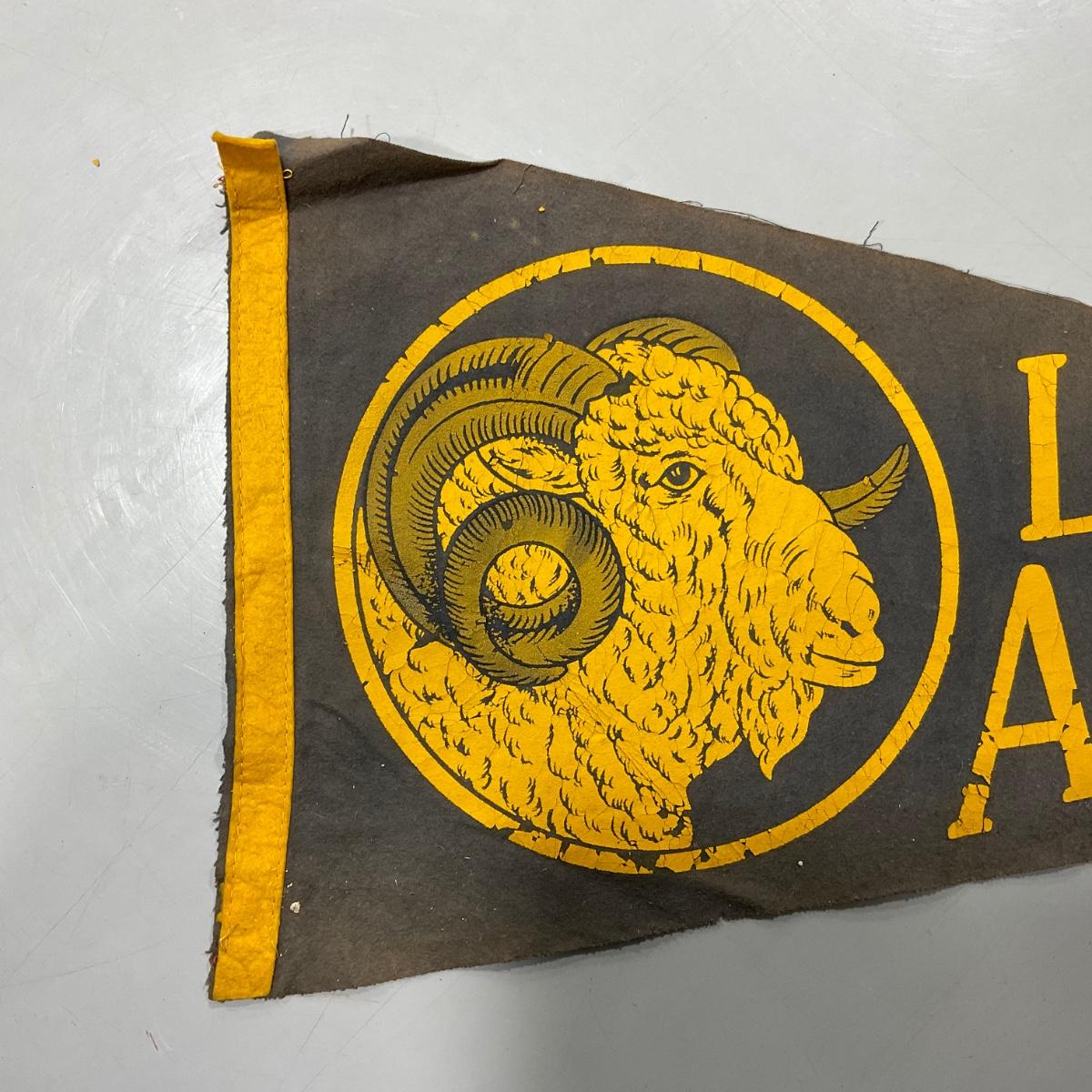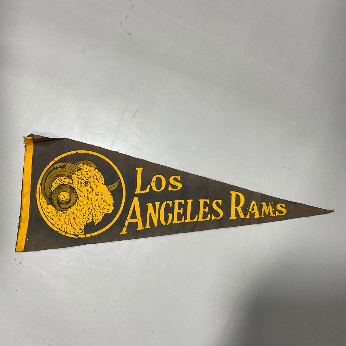 One 29.5 inches long 1940’s Los Angeles Rams full size pennant. There is some damaged. Please see photos for details and condition. ::: Shipping is available on this lot. If you require shipping you must let us know at the close of the auction. We will coordinate with you after the item has been won. Shipping fees will include insurance up to or exceeding the value of all items being mailed. If you have any questions regarding this lot please contact the auctioneer either via this website, by direct email or by phone. PICK UP TIMES and other important information can be found in the TERMS and DESCRIPTION of the auction. Please take a look for pertinent information. Thanks!
