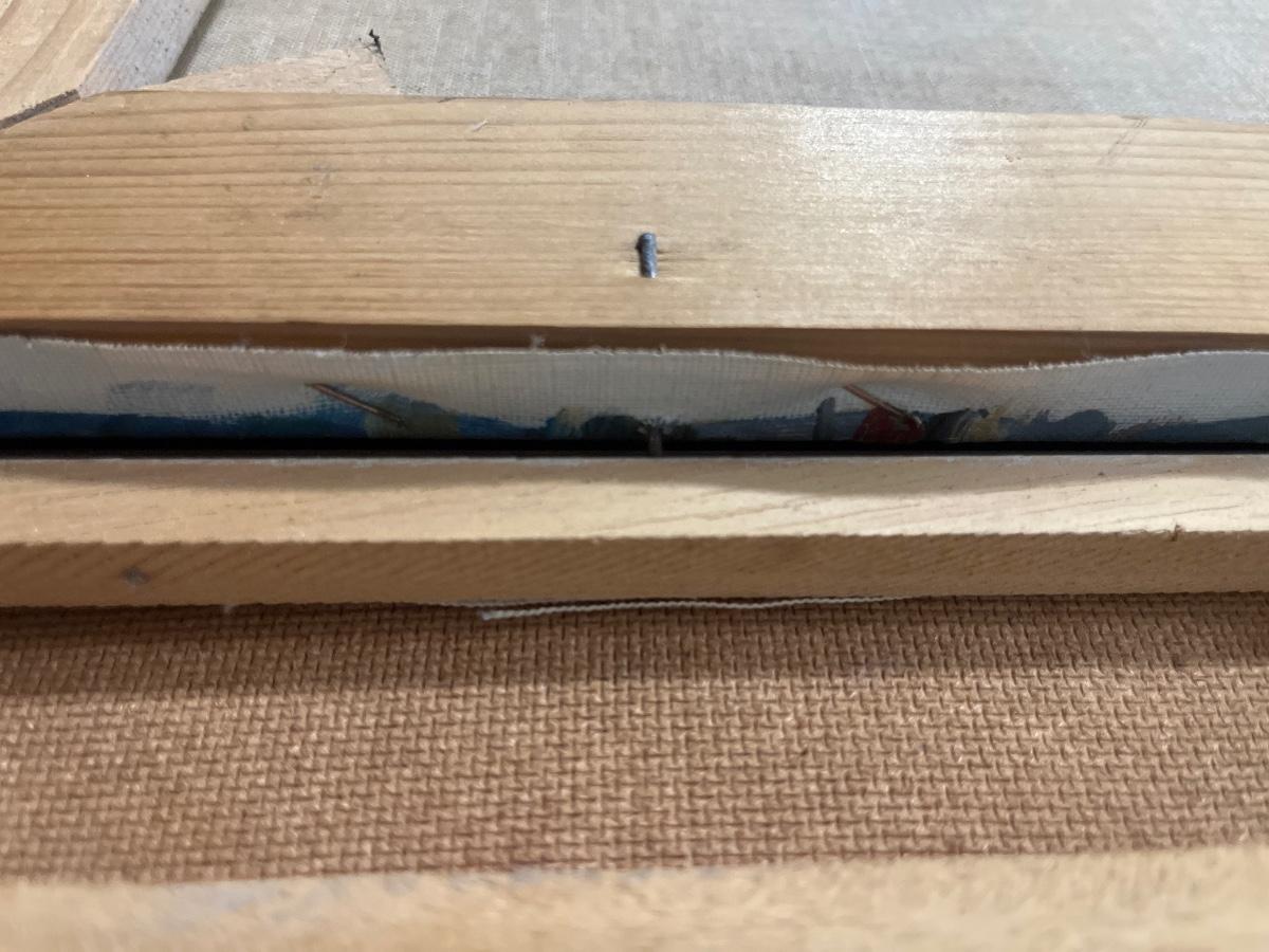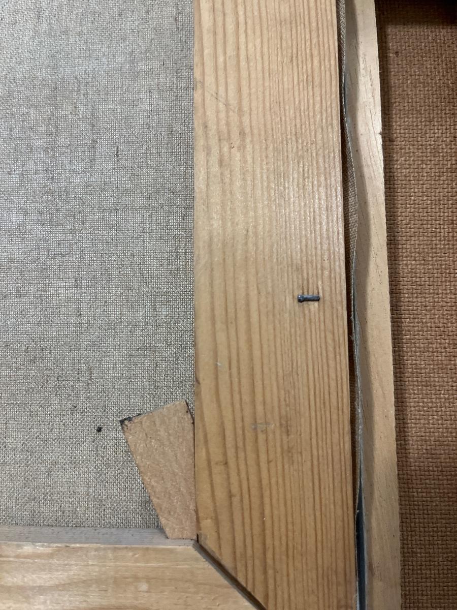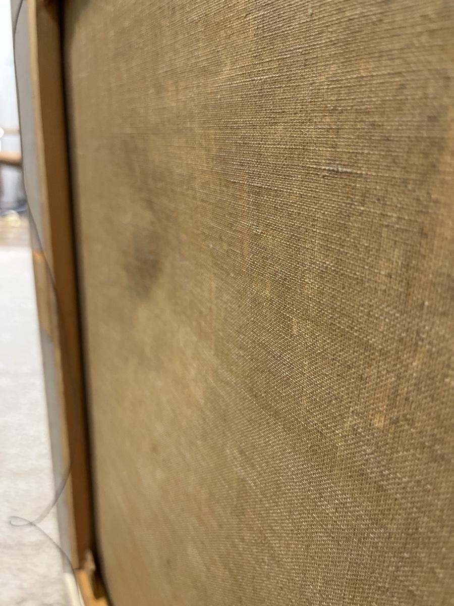 30x26” unsure of artist name. Canvas does have bulge/indent where it may have been leaning on something.