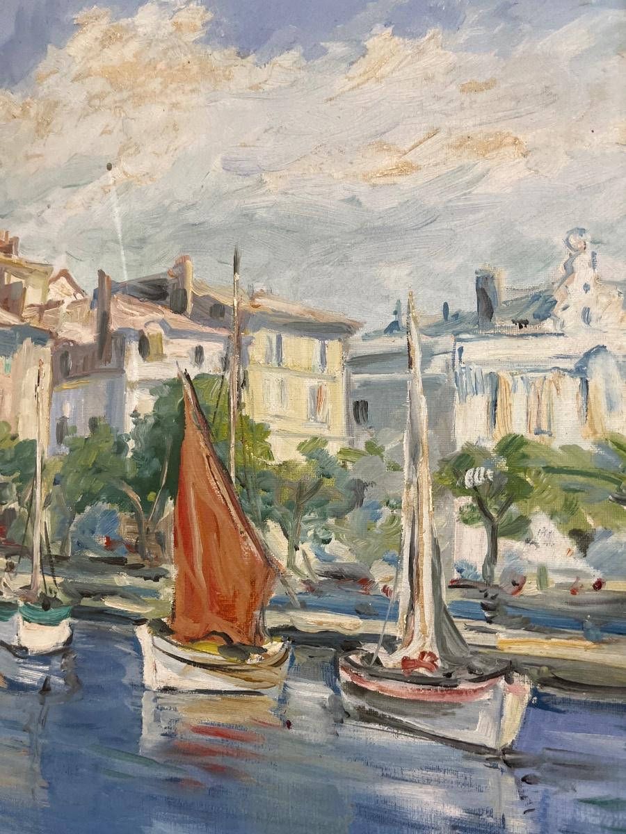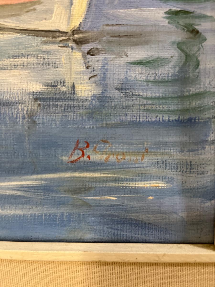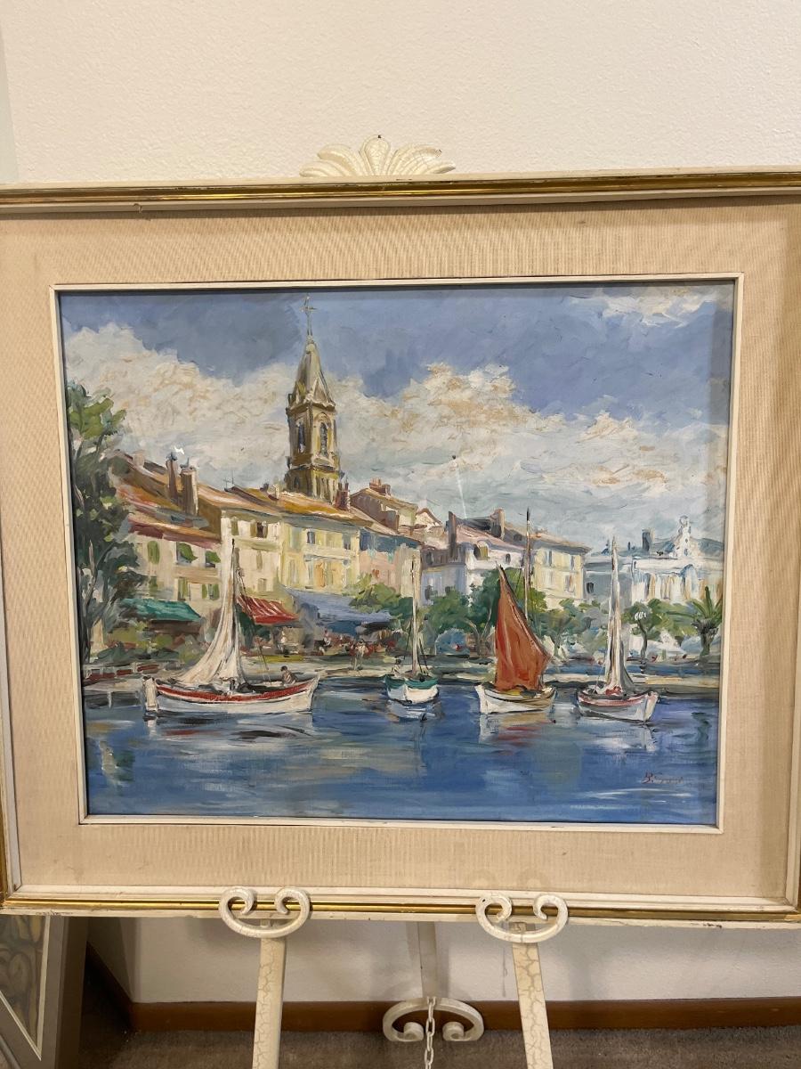 30x26” unsure of artist name. Canvas does have bulge/indent where it may have been leaning on something.