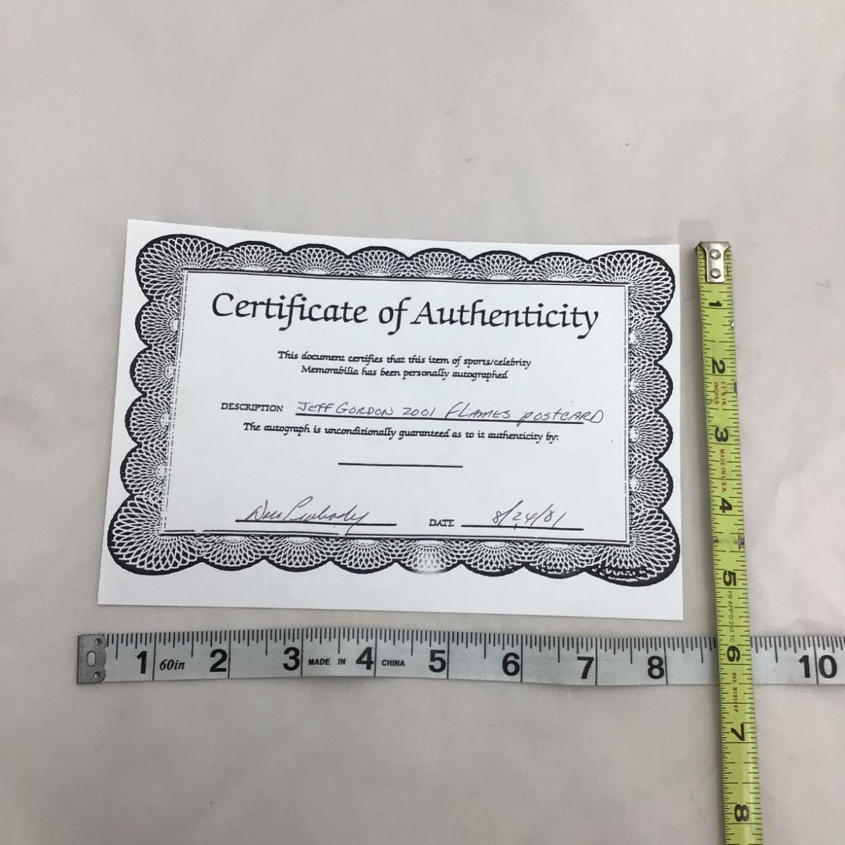 Signed Jeff Gordon and Signed Sterling Marlin photos with certificate of authenticity. Please see photos for details and condition. ::: Shipping is available on this lot. If you require shipping you must let us know at the close of the auction. We will coordinate with you after the item has been won. Shipping fees will include insurance up to or exceeding the value of all items being mailed. If you have any questions regarding this lot please contact the auctioneer either via this website, by direct email or by phone. PICK UP TIMES and other important information can be found in the TERMS and DESCRIPTION of the auction. Please take a look for pertinent information. Thanks!