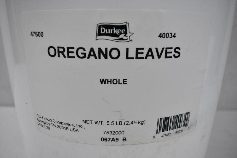 5.5 pounds Oregano Leaves by Durkee. Sealed Bucket
