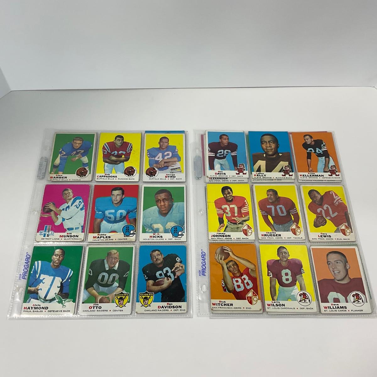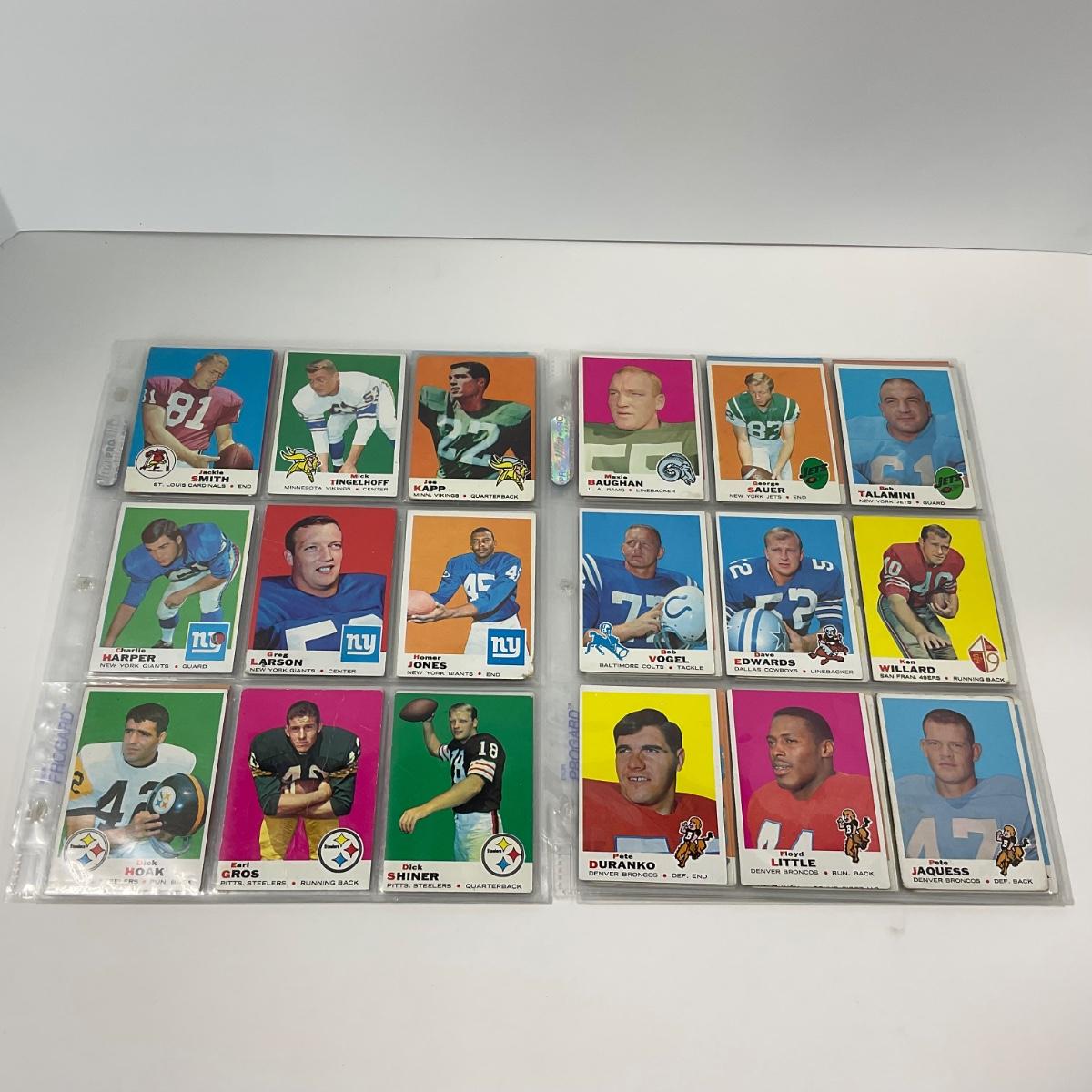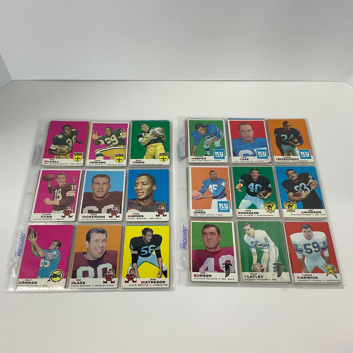 12 pages of vintage 1969 Topps Football Cards. Please see photos for details and condition. ::: Shipping is available on this lot. If you require shipping you must let us know at the close of the auction. We will coordinate with you after the item has been won. Shipping fees will include insurance up to or exceeding the value of all items being mailed. If you have any questions regarding this lot please contact the auctioneer either via this website, by direct email or by phone. PICK UP TIMES and other important information can be found in the TERMS and DESCRIPTION of the auction. Please take a look for pertinent information. Thanks!