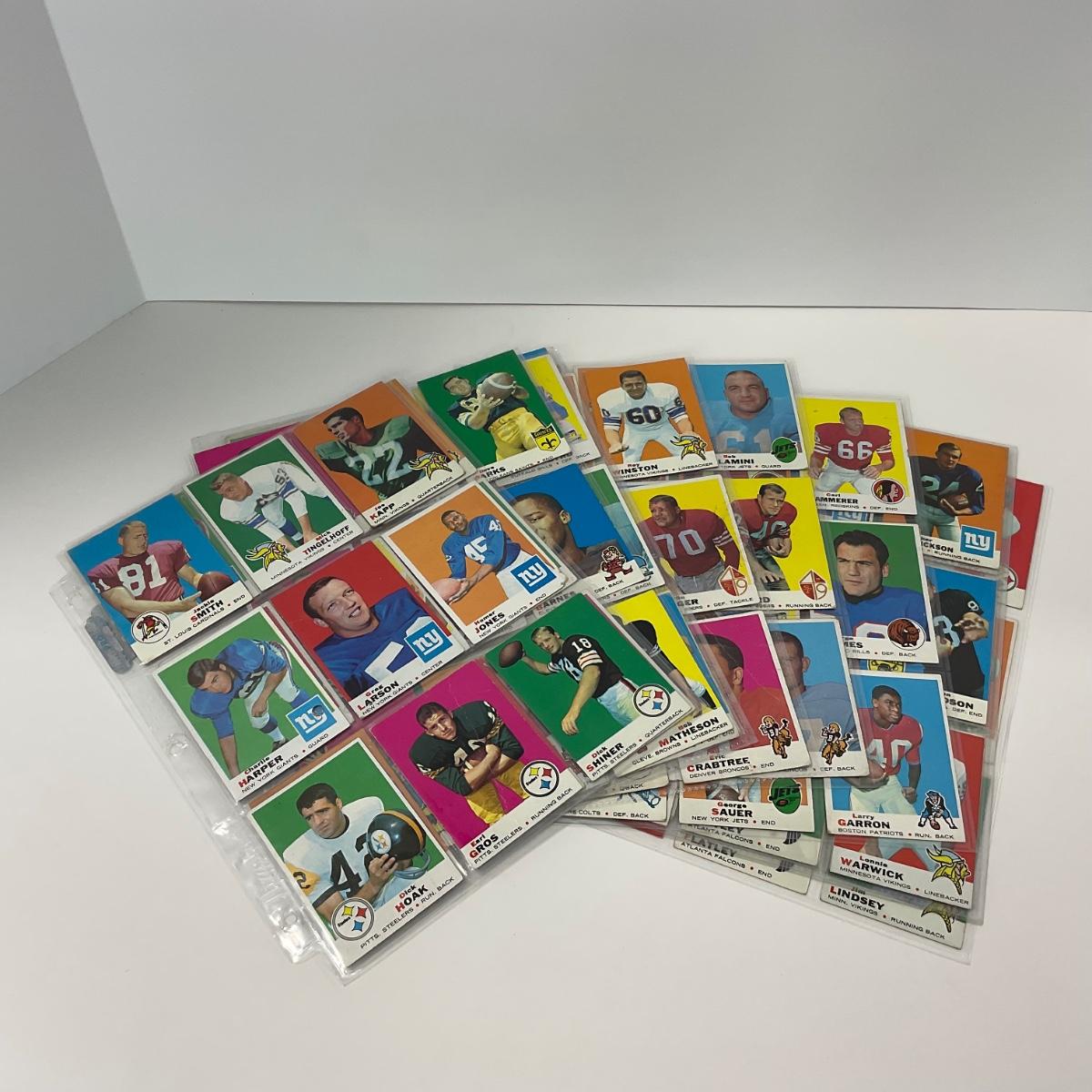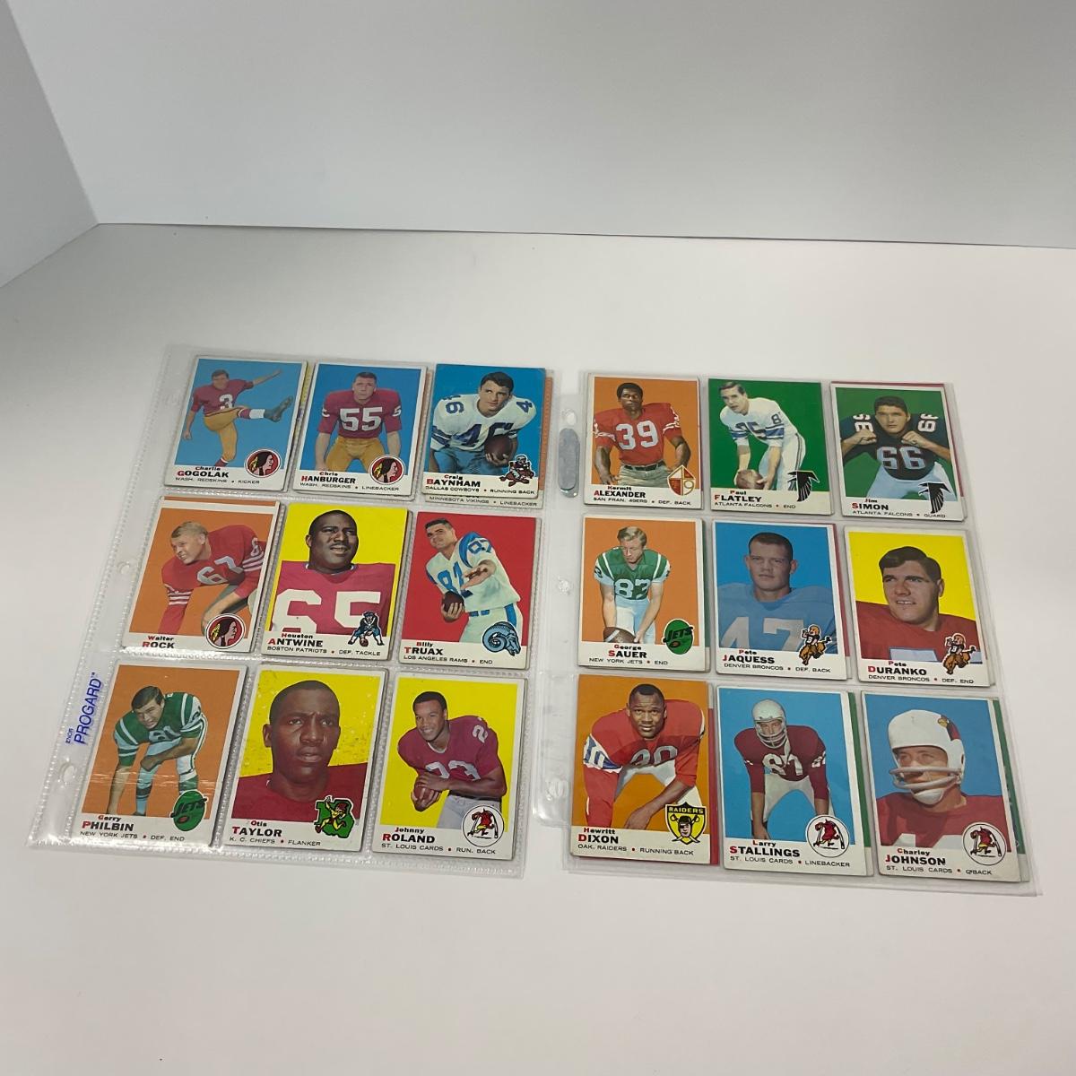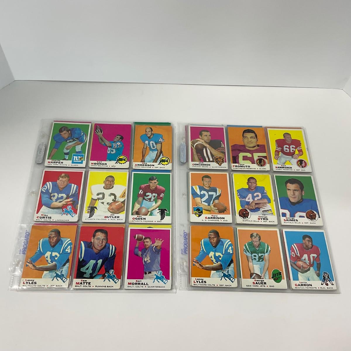 12 pages of vintage 1969 Topps Football Cards. Please see photos for details and condition. ::: Shipping is available on this lot. If you require shipping you must let us know at the close of the auction. We will coordinate with you after the item has been won. Shipping fees will include insurance up to or exceeding the value of all items being mailed. If you have any questions regarding this lot please contact the auctioneer either via this website, by direct email or by phone. PICK UP TIMES and other important information can be found in the TERMS and DESCRIPTION of the auction. Please take a look for pertinent information. Thanks!