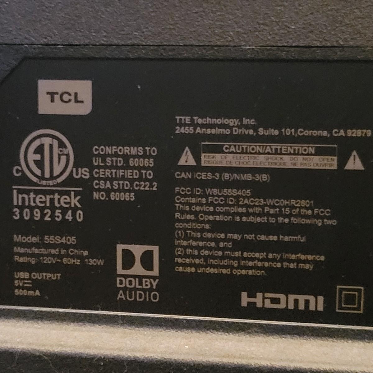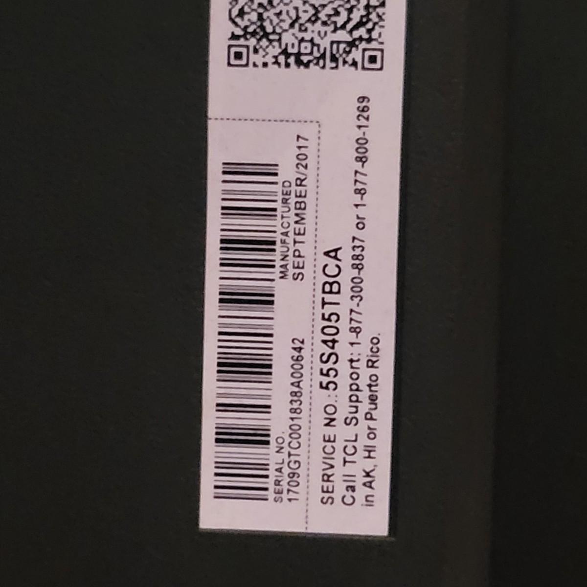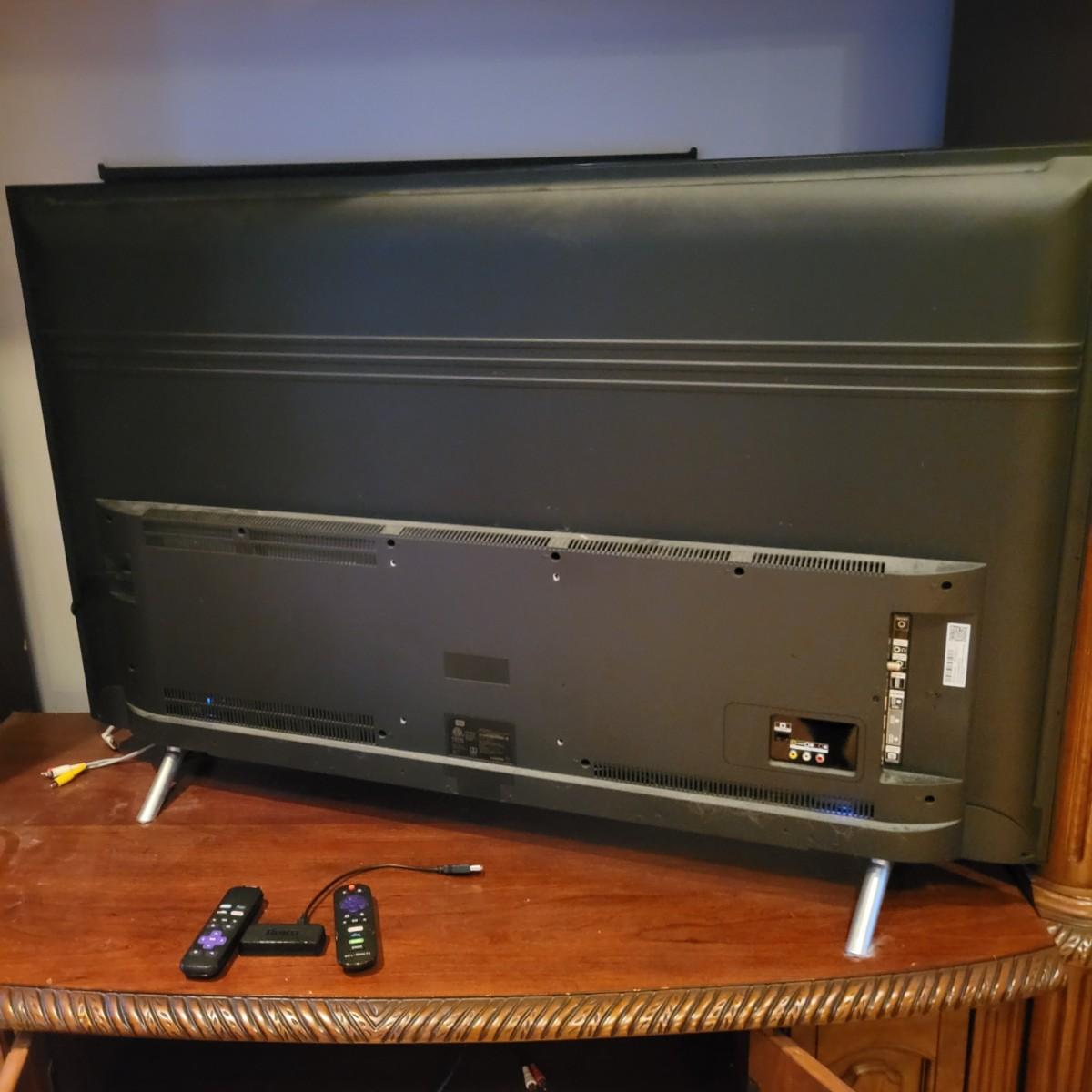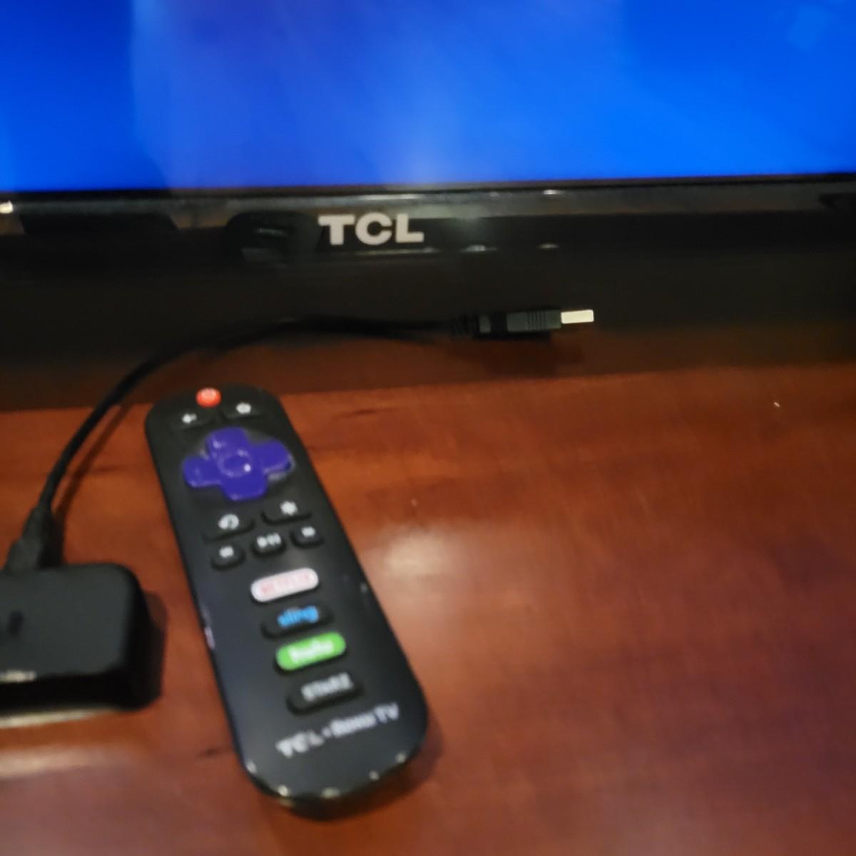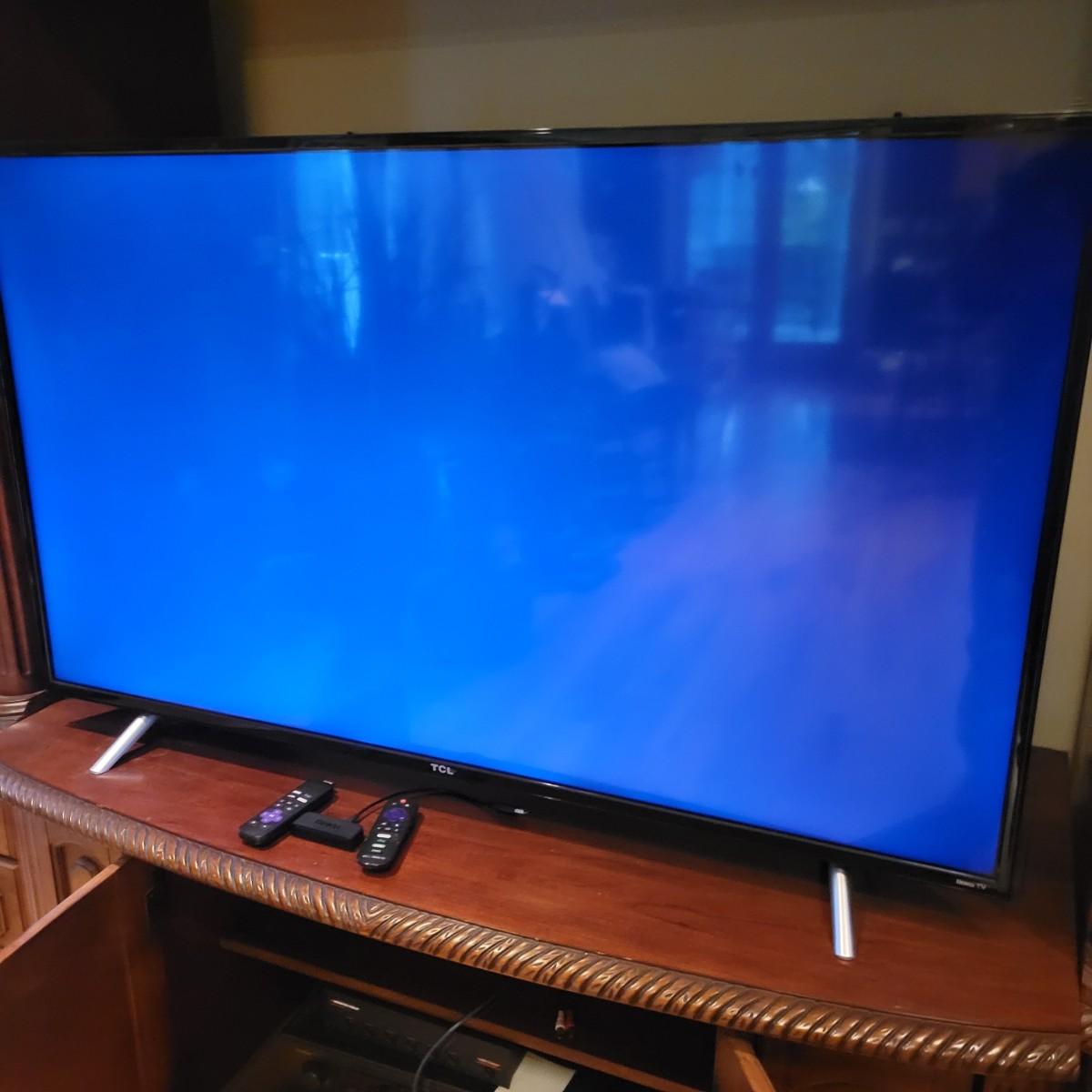 A 55" smart TV and Roku in excellent condition with no damage. Included is a TCL smart TV and remote that was tested and powered on. Model# 55S405. Includes multiple hdmi inputs, digital optical audio and composite video inputs. Also included is a portable Roku dongle and remote. Local pickup only
