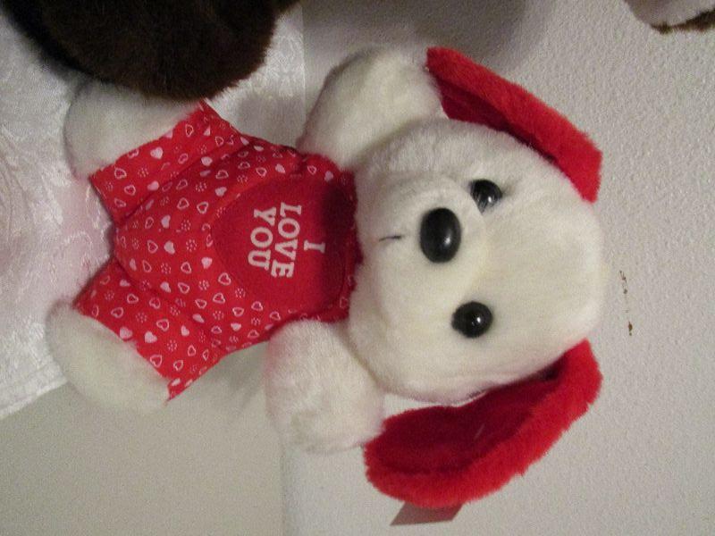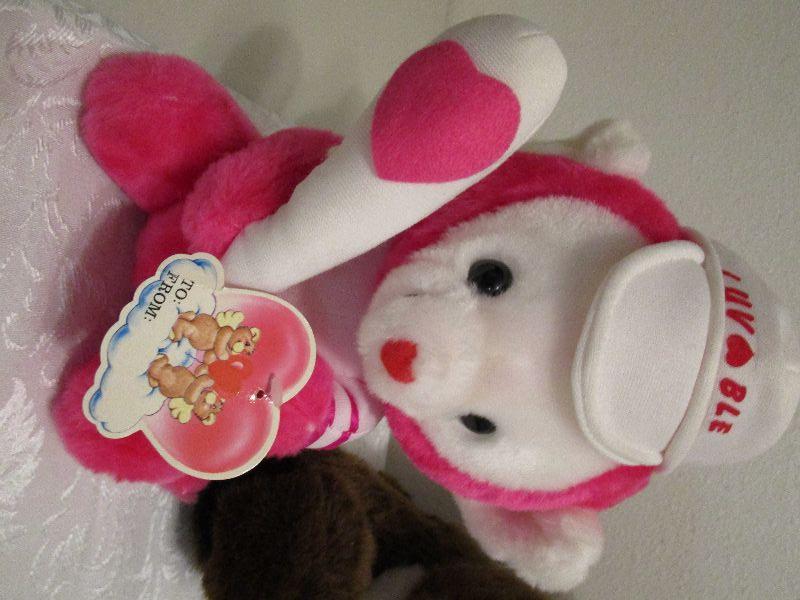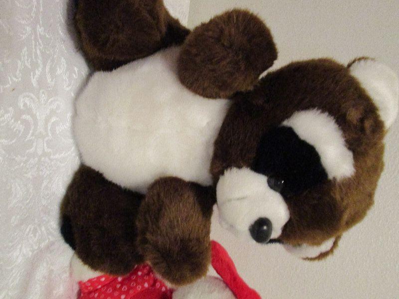 Valentines Day 10" Monkey new with label and baseball bat, Valentine's Day 9" Dog new with label and 13" Raccoon