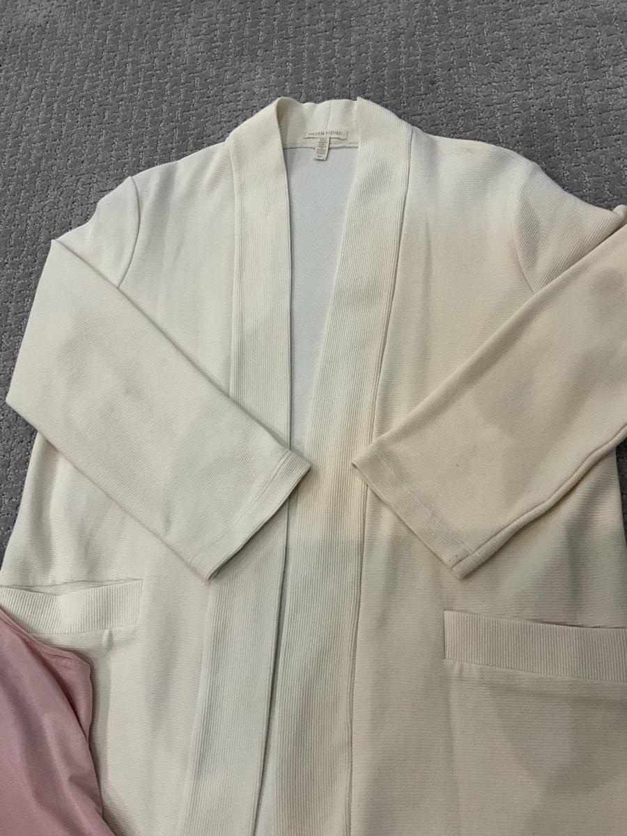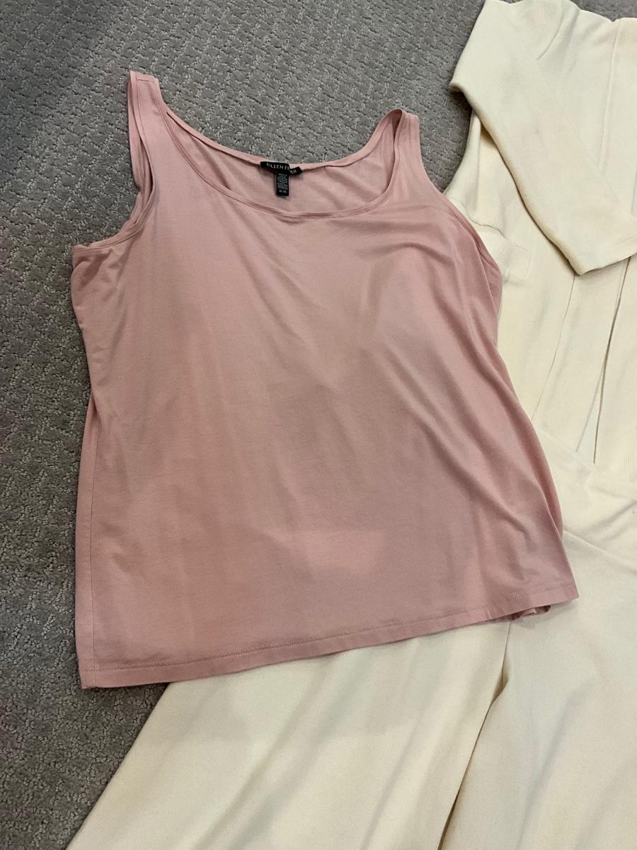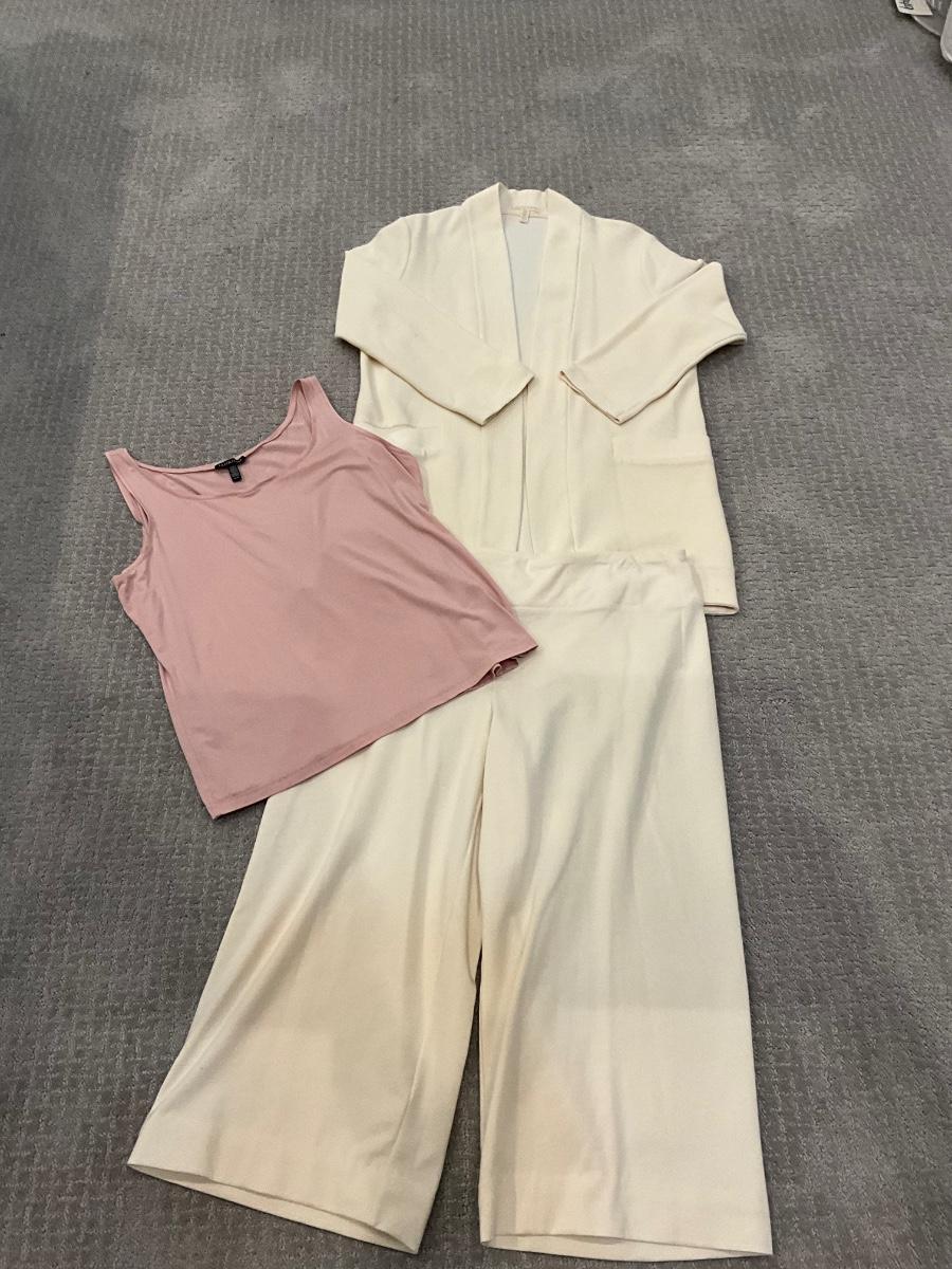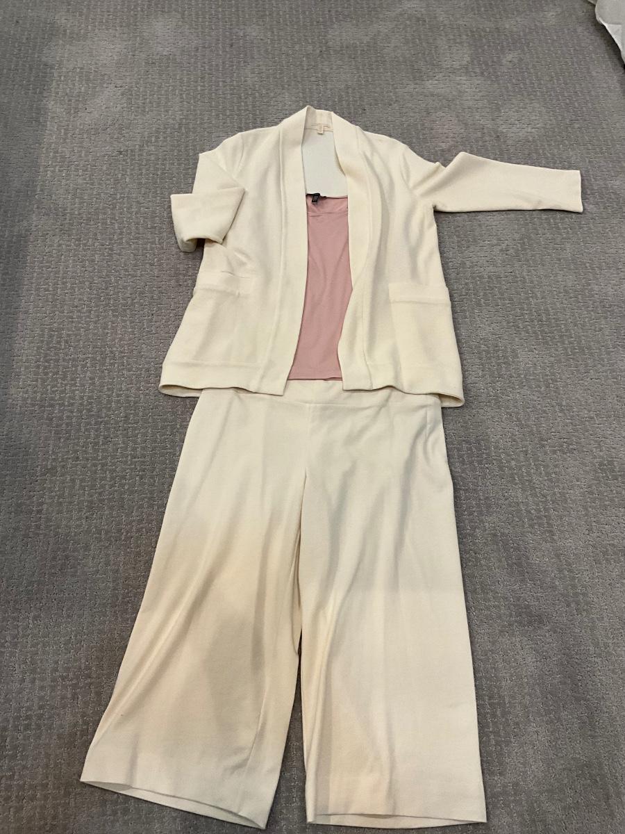 551 Eileen Fisher 3 pc Set with Palazzo Pants, Pink Tank and Open Cardigan