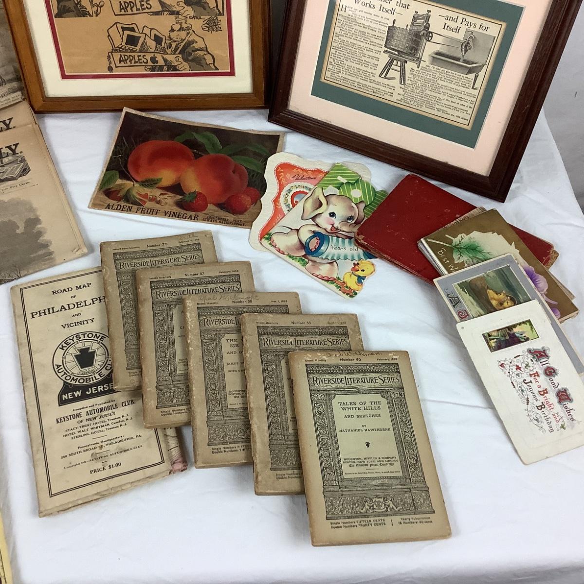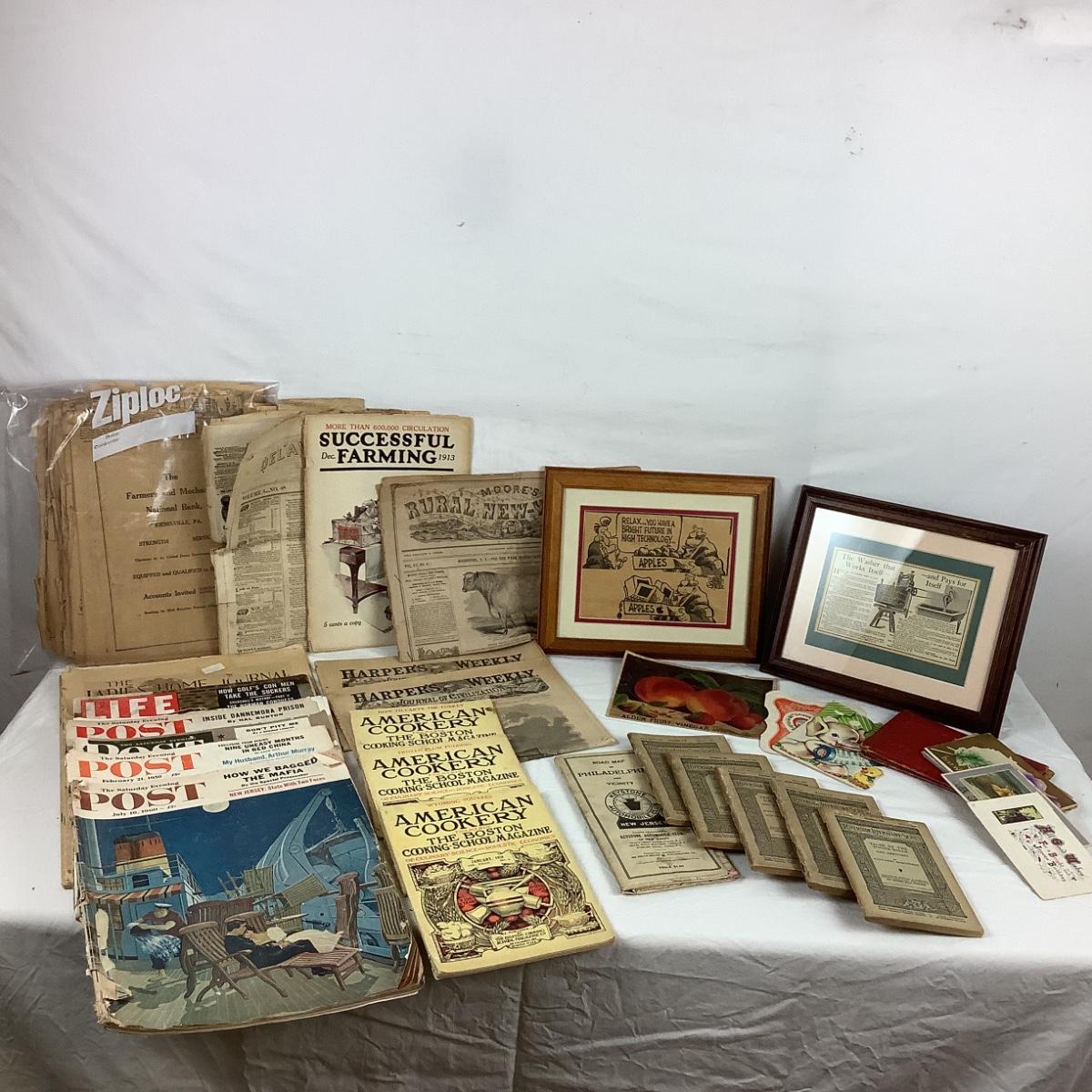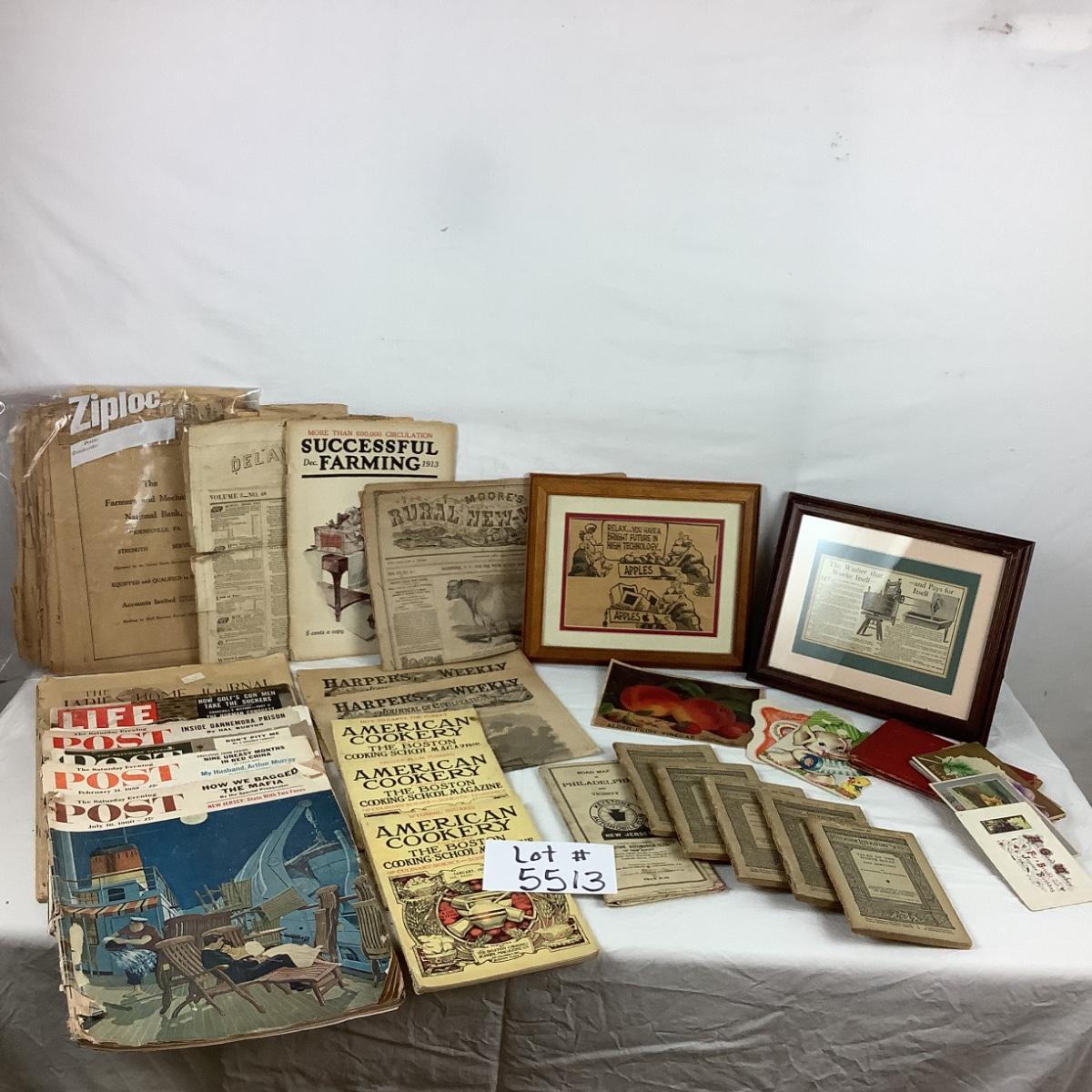 5513 Lot of Vintage Advertising Papers, Magazines, Post cards and more