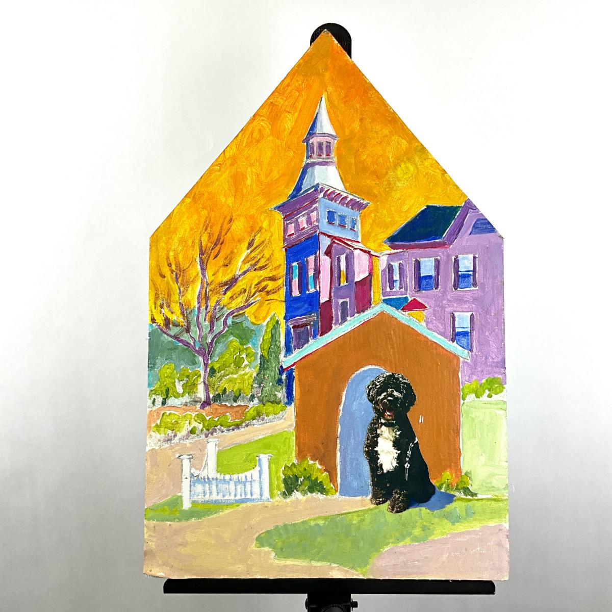 552 Acrylic On House Shaped Board/Canvas "At Home With Misha"