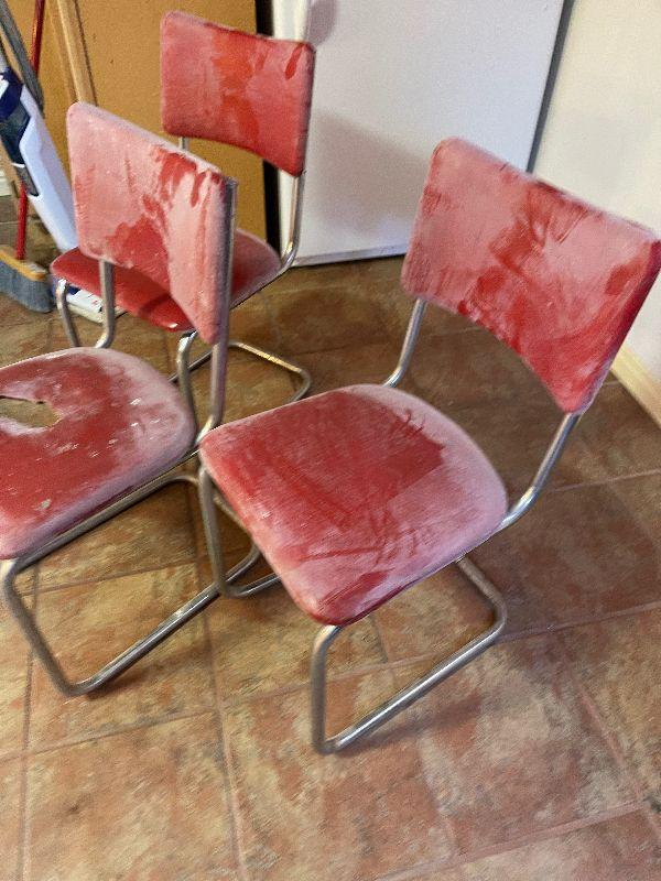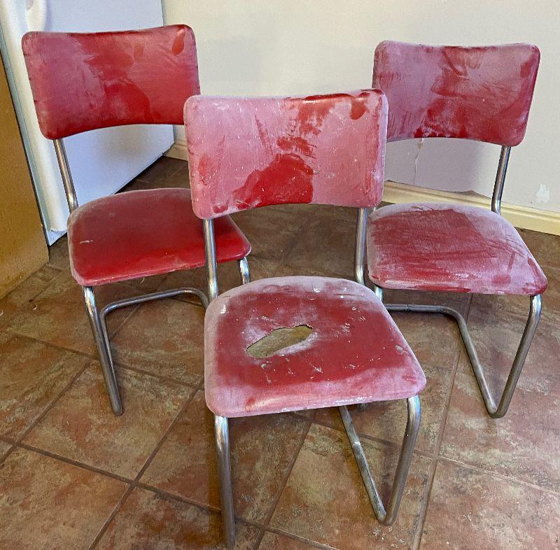 #553 B (3) Red / Chrome Vinal Kitchen Chairs