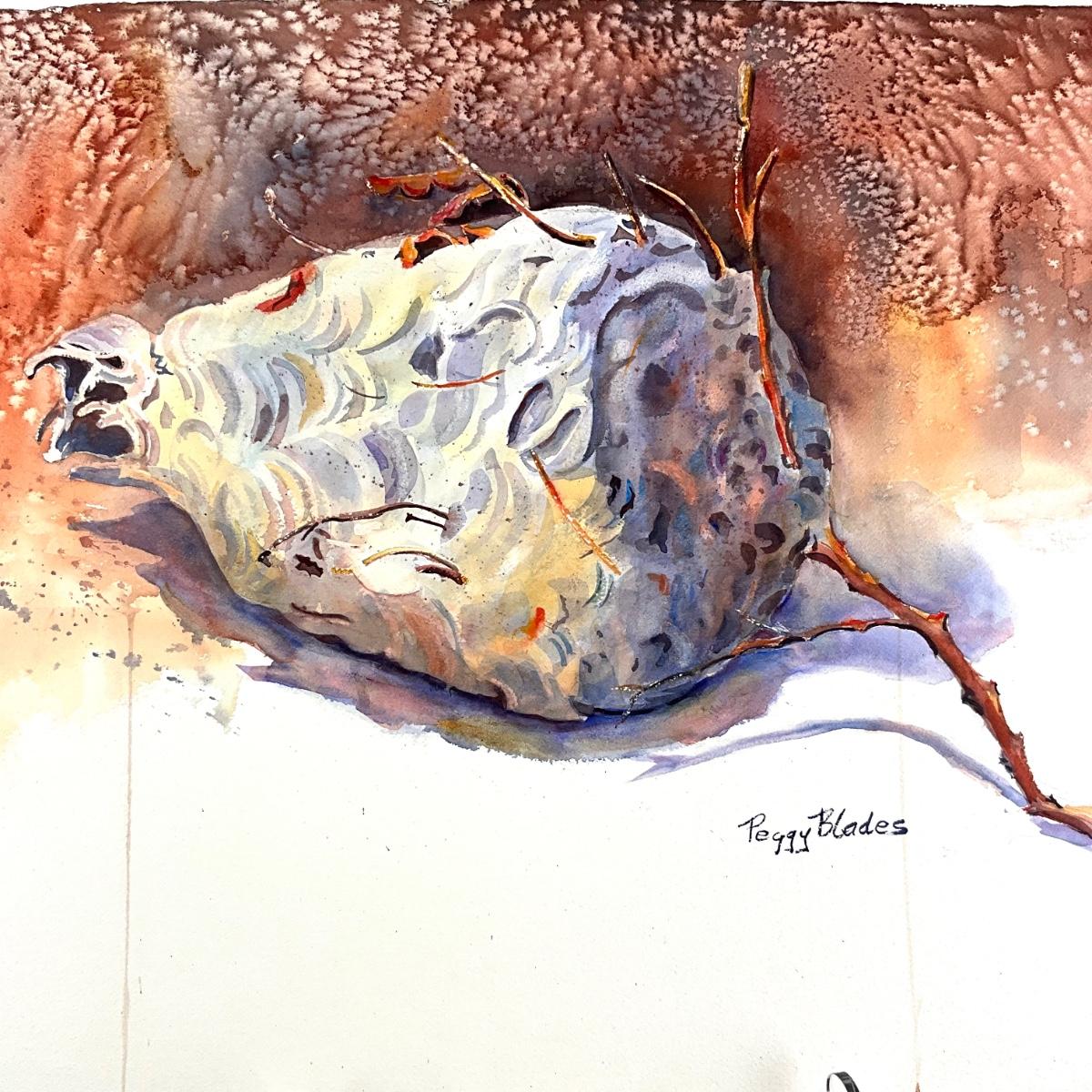 554 Original Watercolor of Wasp Nest by Peggy Blades