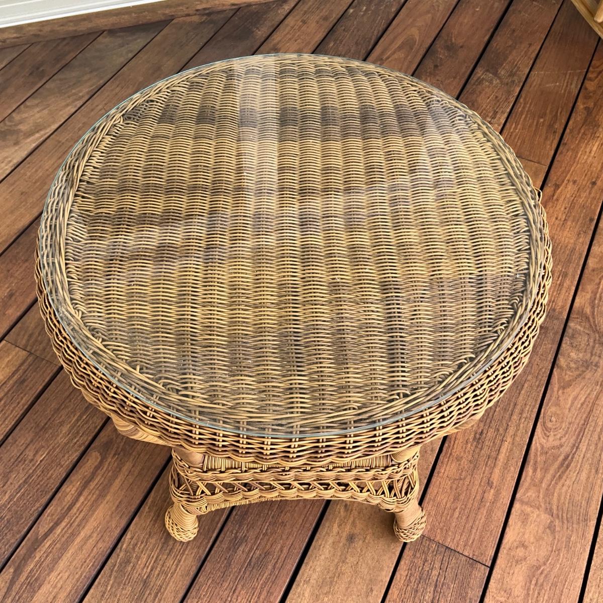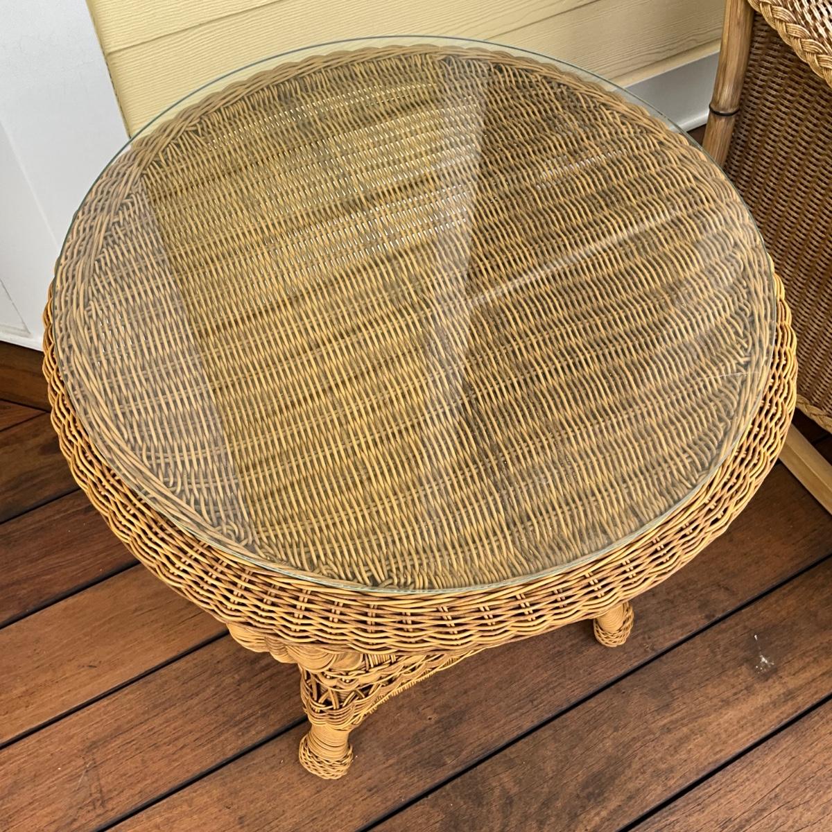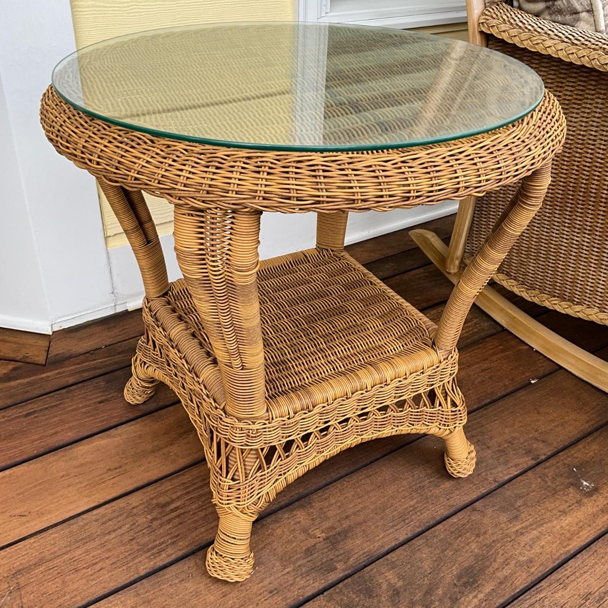 554 Resin Wicker Glass top End Table