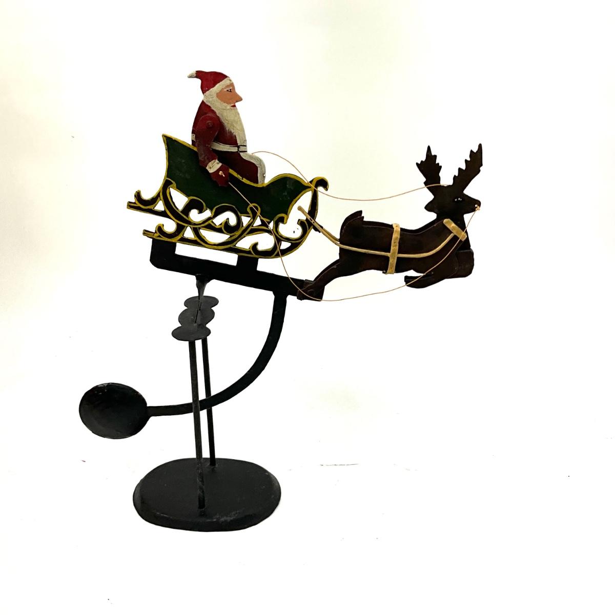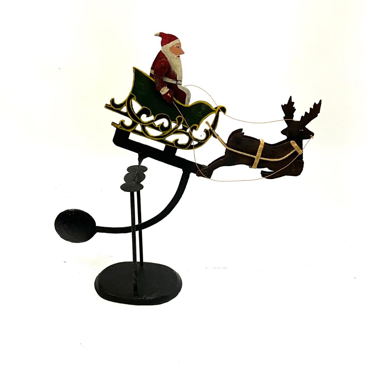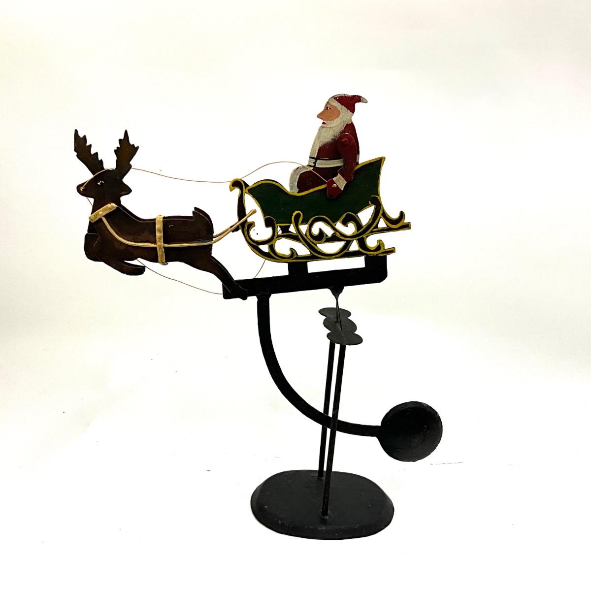554 Santa with Reindeer 15.5" Metal Pendulum