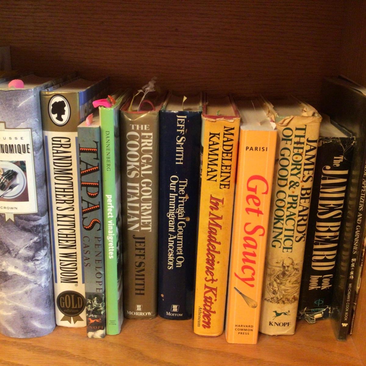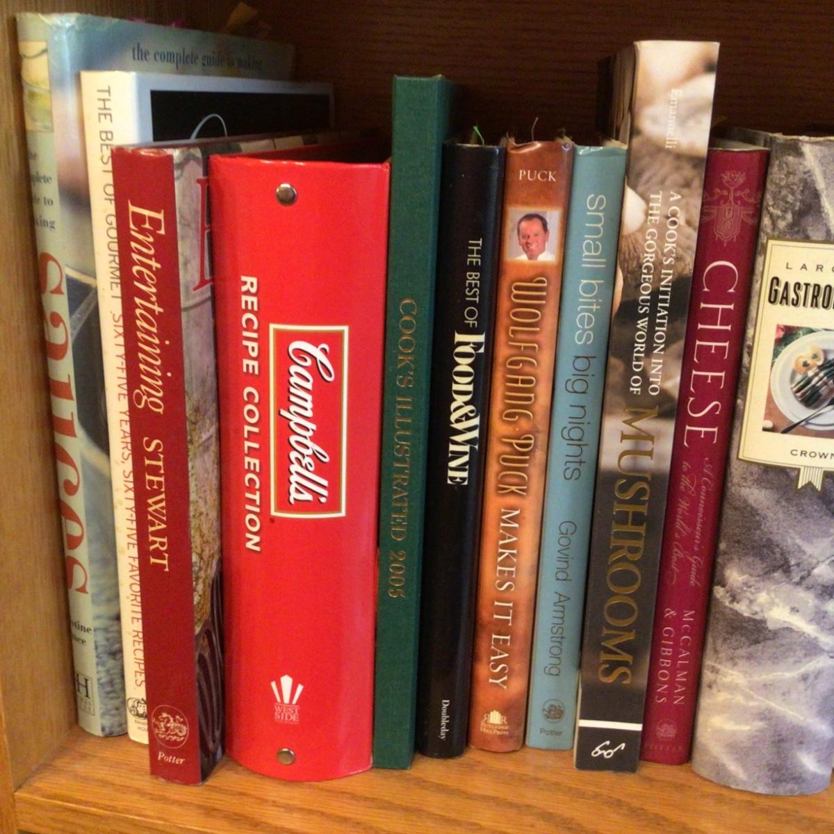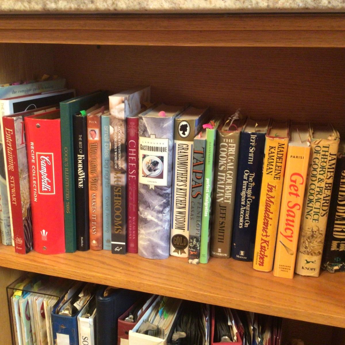 Lot includes all books on the shelf-various cookbooks both hardback and paperback.