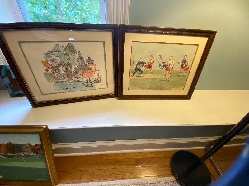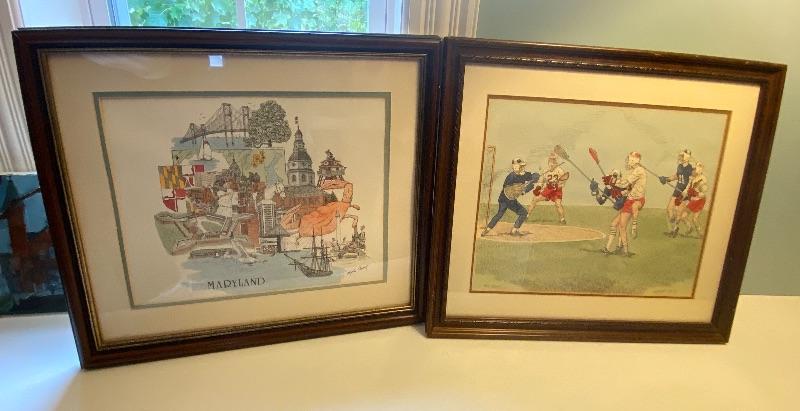 maryland art is a framed print and the Lacrosse is a Lithograph called " Call the shot"
