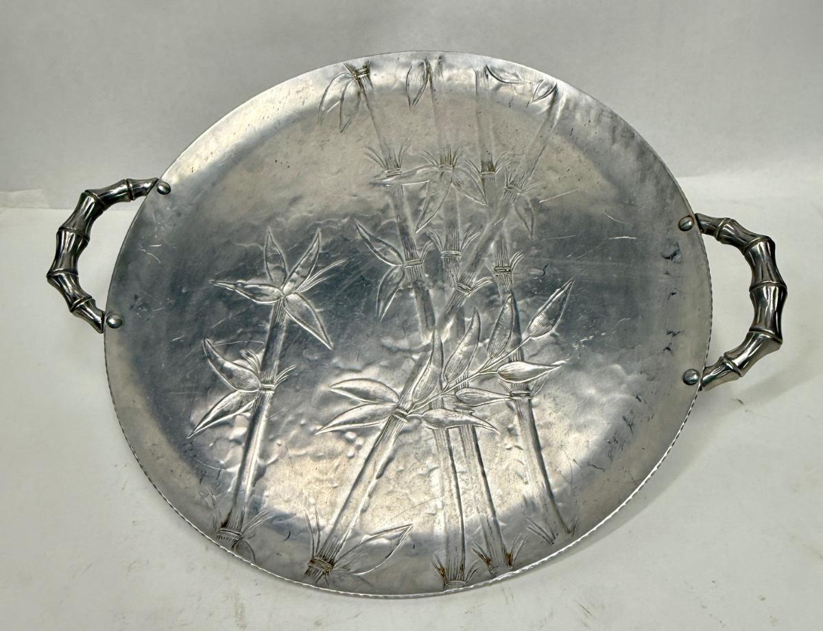 14” Vintage Aluminum Tray (16” With Handles) With Bamboo Motif By Everlast