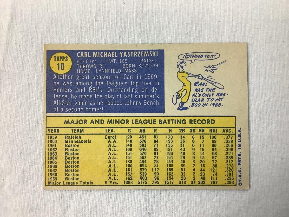 Vintage 1970 Topps Chewing Gum Carl Yastrzemski, Boston Red Sox #10 Baseball Card