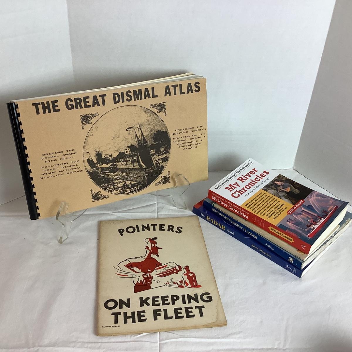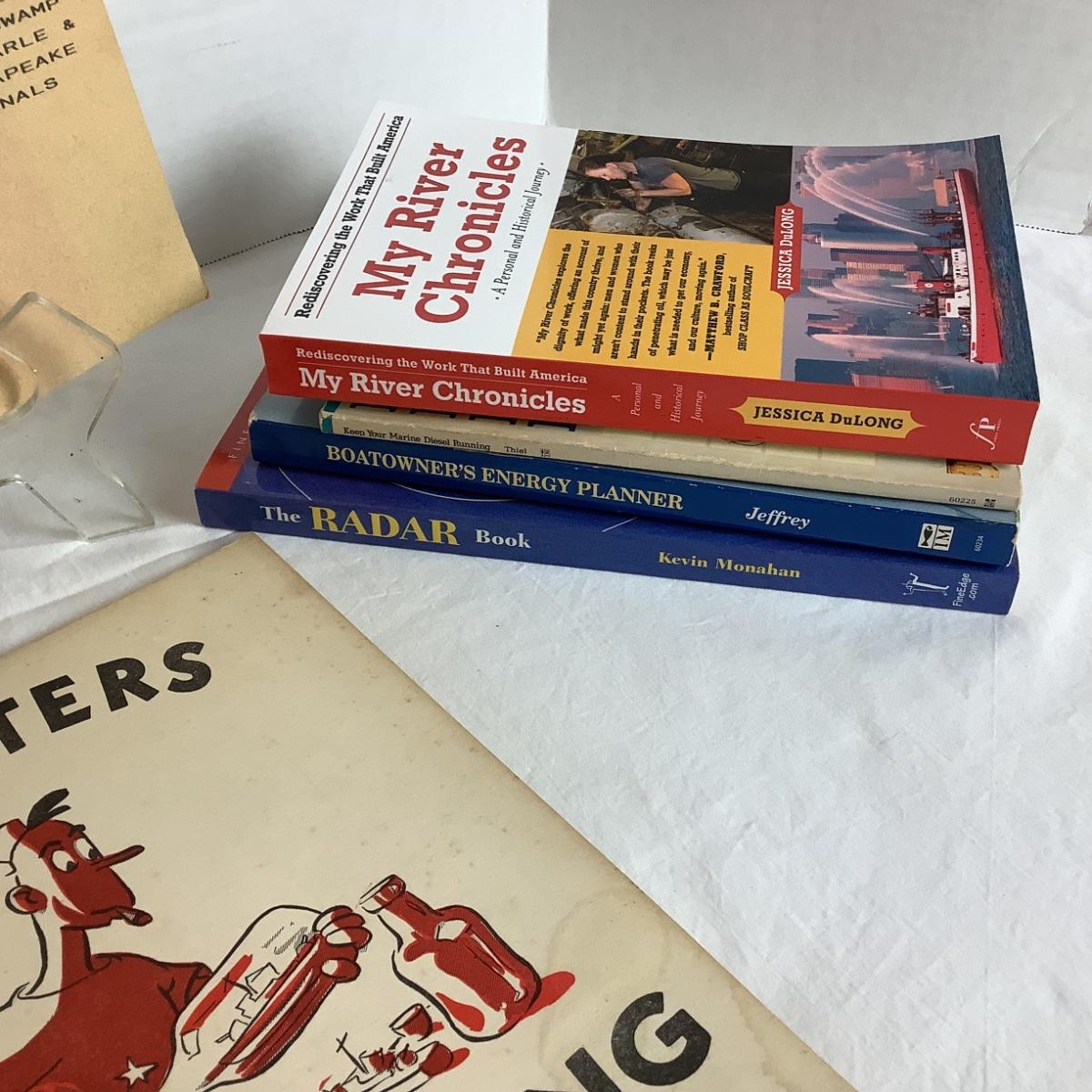 Assorted boat reference books with 2 vintage ship publications.