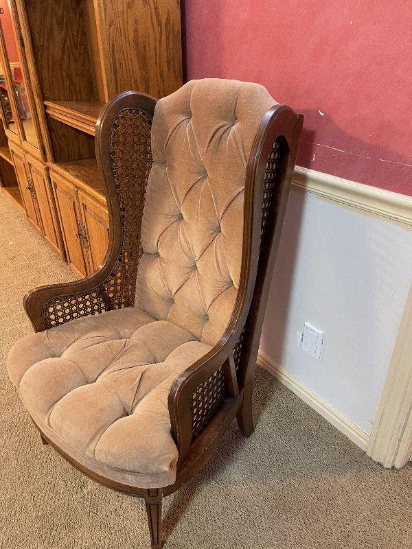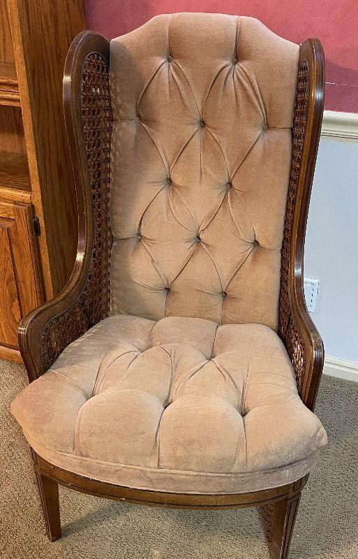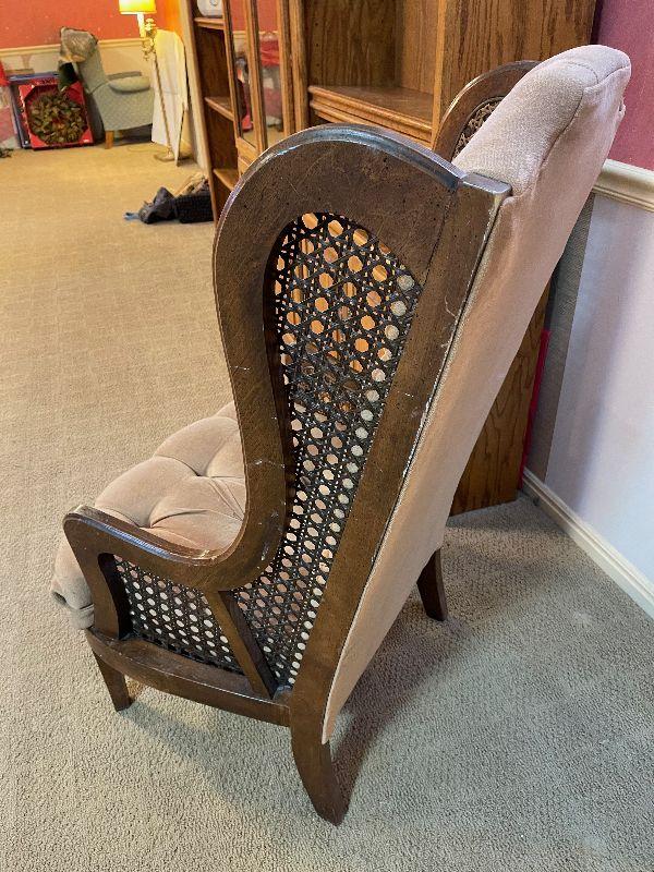 #557 B  Wing Back Chair Tax Diamond Tuck Cane Sides