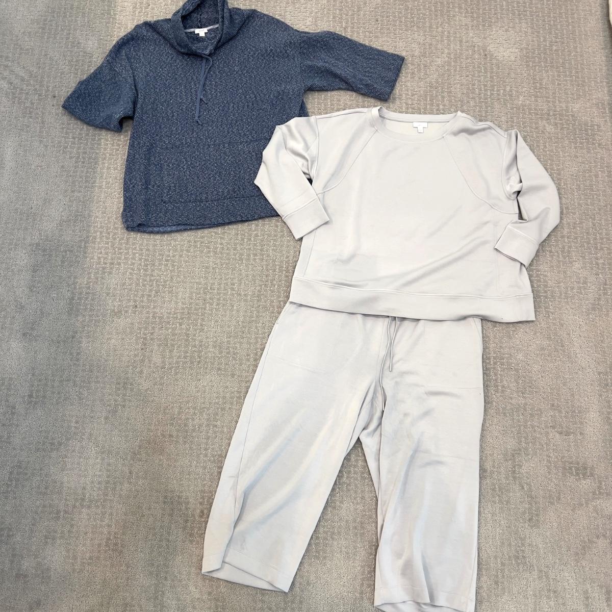 Casual pant set has wide leg bottom and ix a size Large