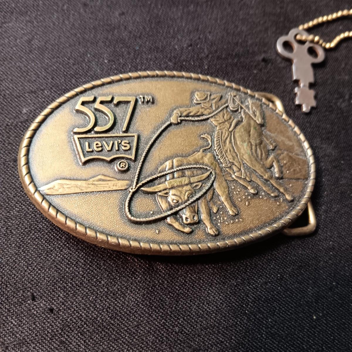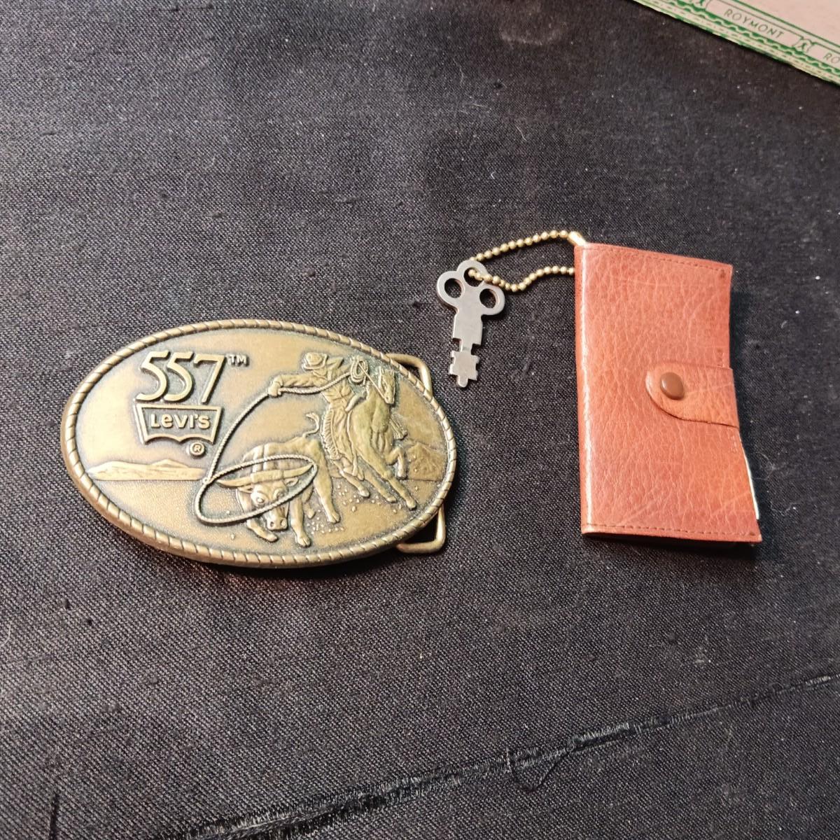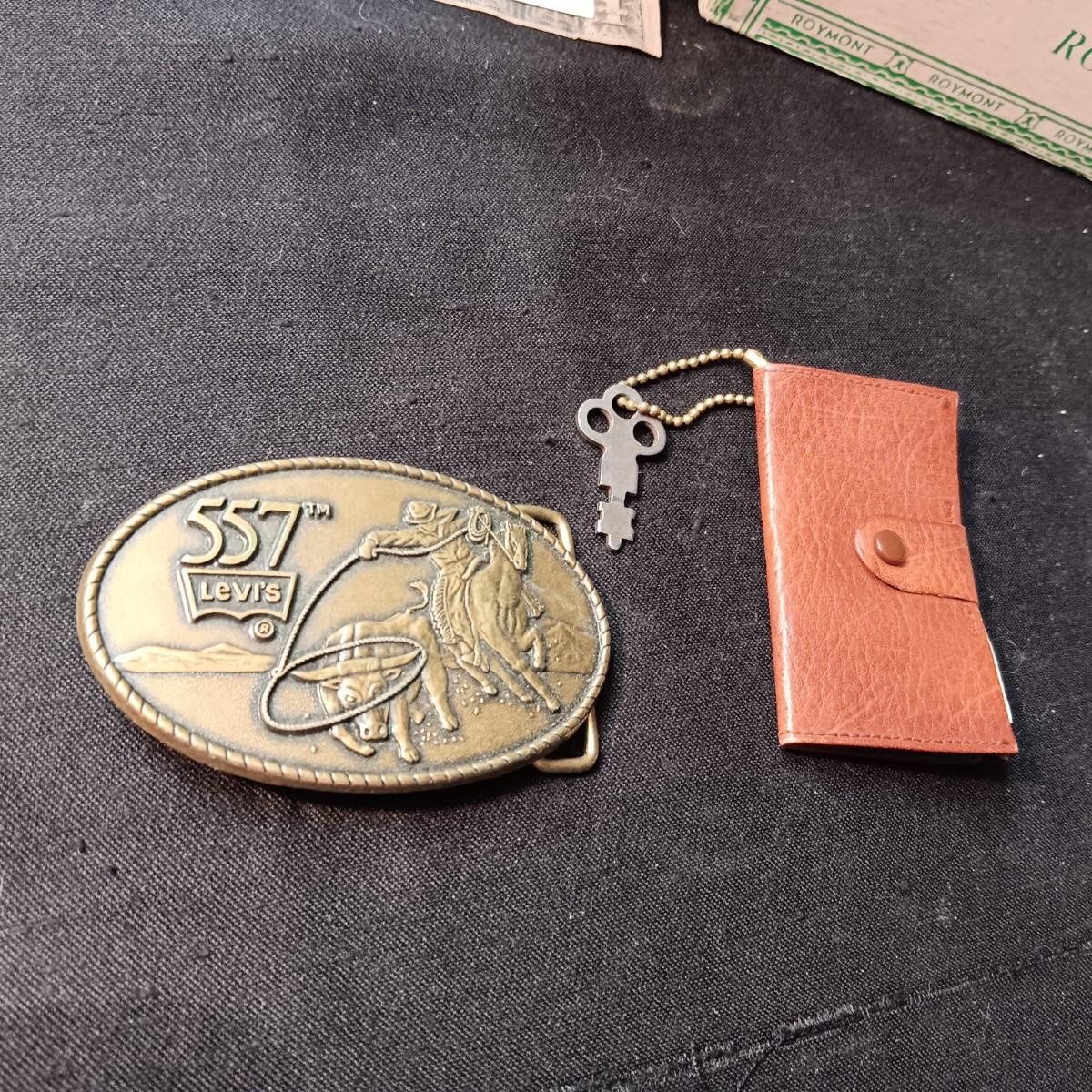 557 LEVIS BRASS BELT BUCKLE AND A MEEKER MADE AUTO KEY AND LICENSE CASE